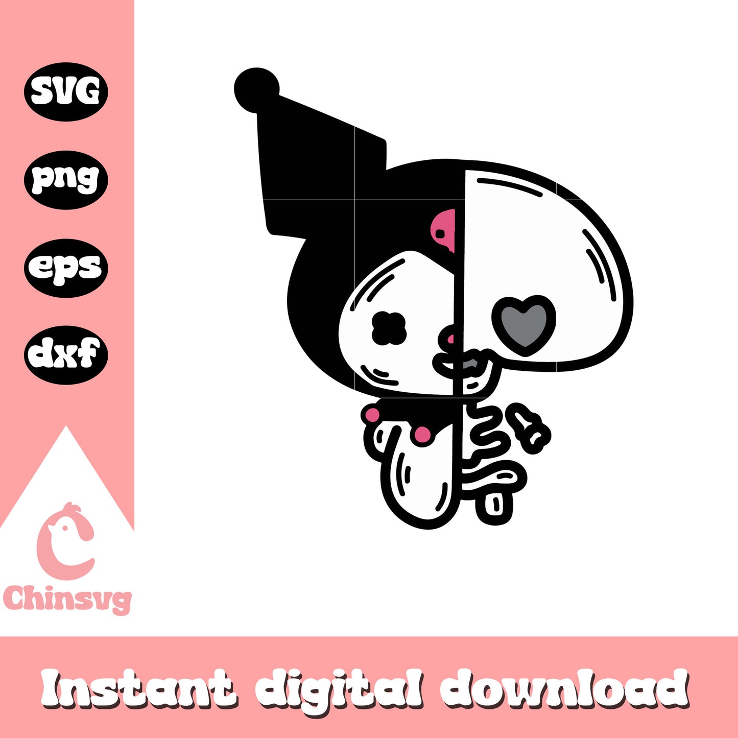Kuromi half skeleton svg, kuromi skeleton svg, sanrio cartoon svg