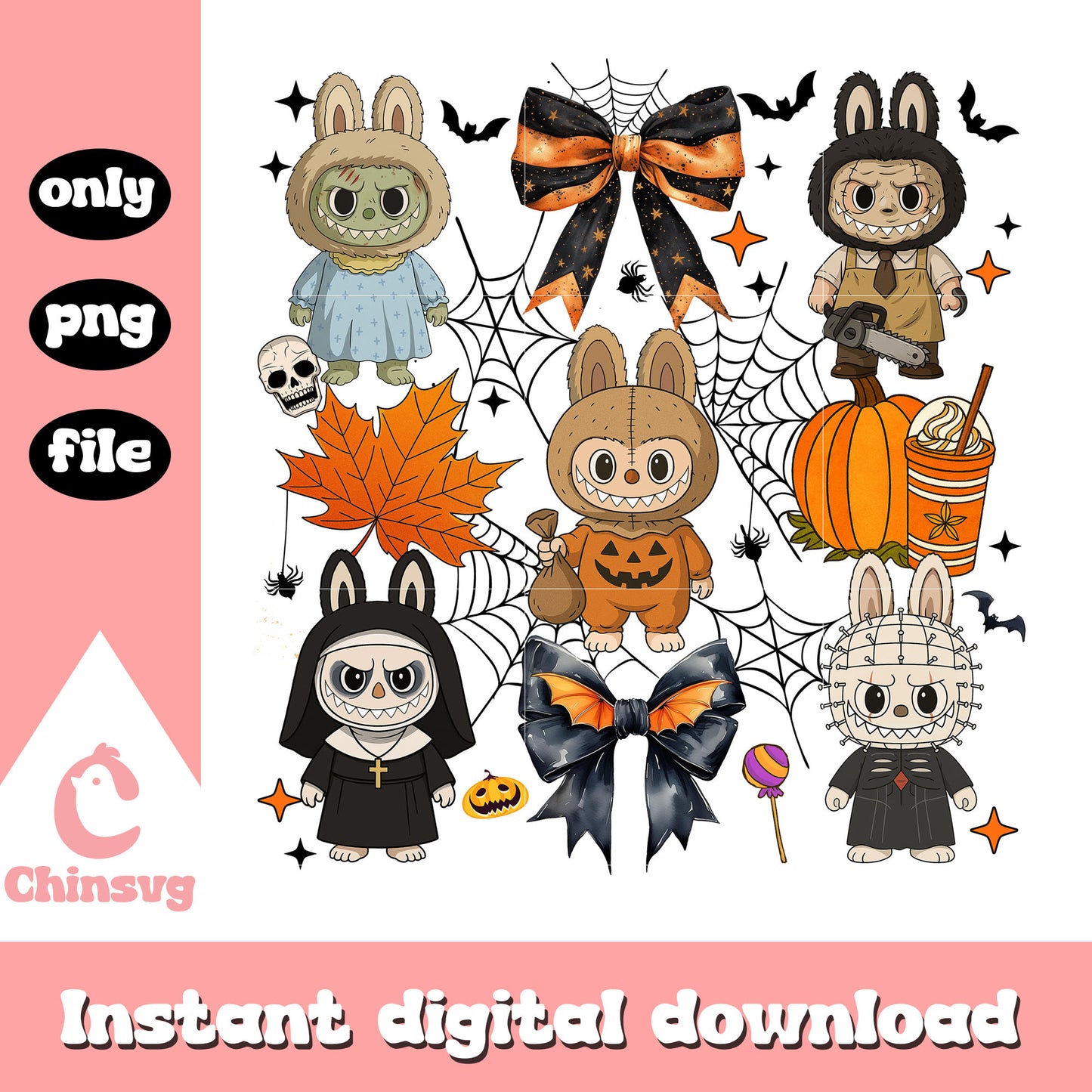 Labubu and horror autumn png is a product of our Halloween collection. Whether you're crafting spooky decorations, designing party invitations, or creating unique apparel, this collection is packed with high-quality, detailed graphics that perfectly capture the spirit of Halloween. From pumpkins, ghosts, bats, to witches, skeletons, and more, this set offers endless possibilities for your creative ideas.