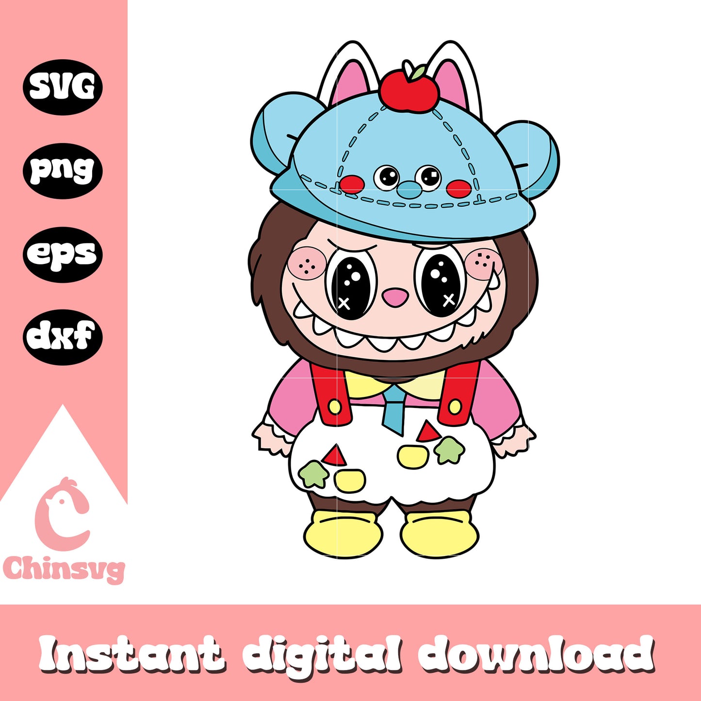 Labubu apple cap cute doll drawing svg, labubu clothing svg