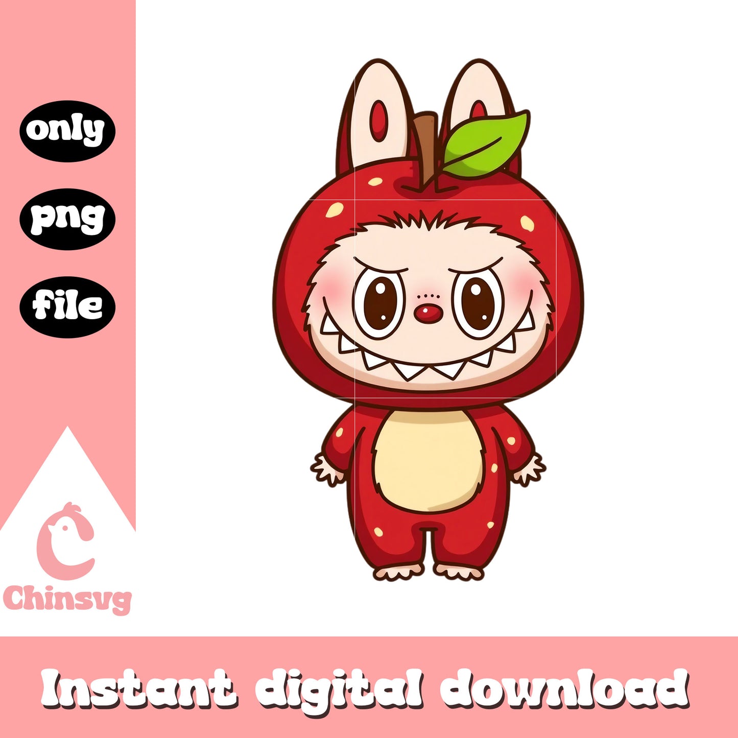 Labubu apple clothes doll design png is a product of our Labubu collection. Dive into the magical world of Labubu with our whimsical Labubu SVG Collection! Inspired by the beloved mischievous character from the POP MART universe, this collection is filled with playful poses, expressive faces, and cute yet edgy vibes. Perfect for fans, collectors, and crafters looking to add a touch of artistic charm and character to their projects.