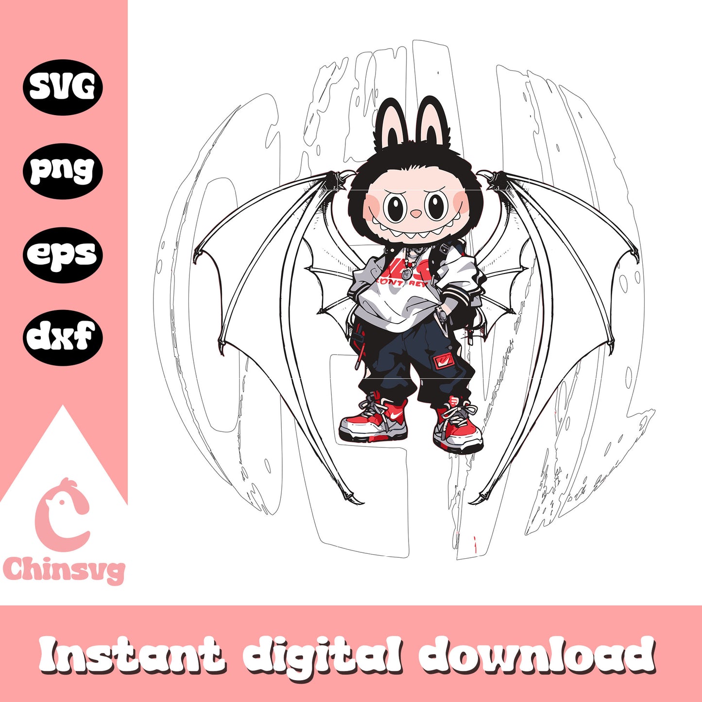 Labubu bat wing cute doll drawing svg, labubu outfits svg