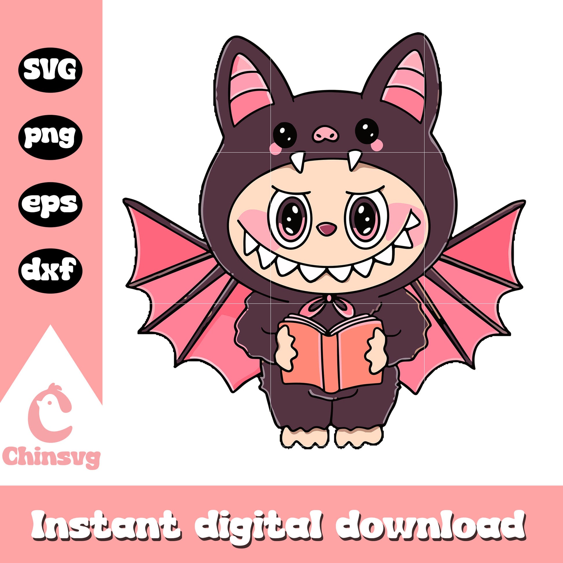 Labubu bookworm bat halloween design svg, halloween bats svg