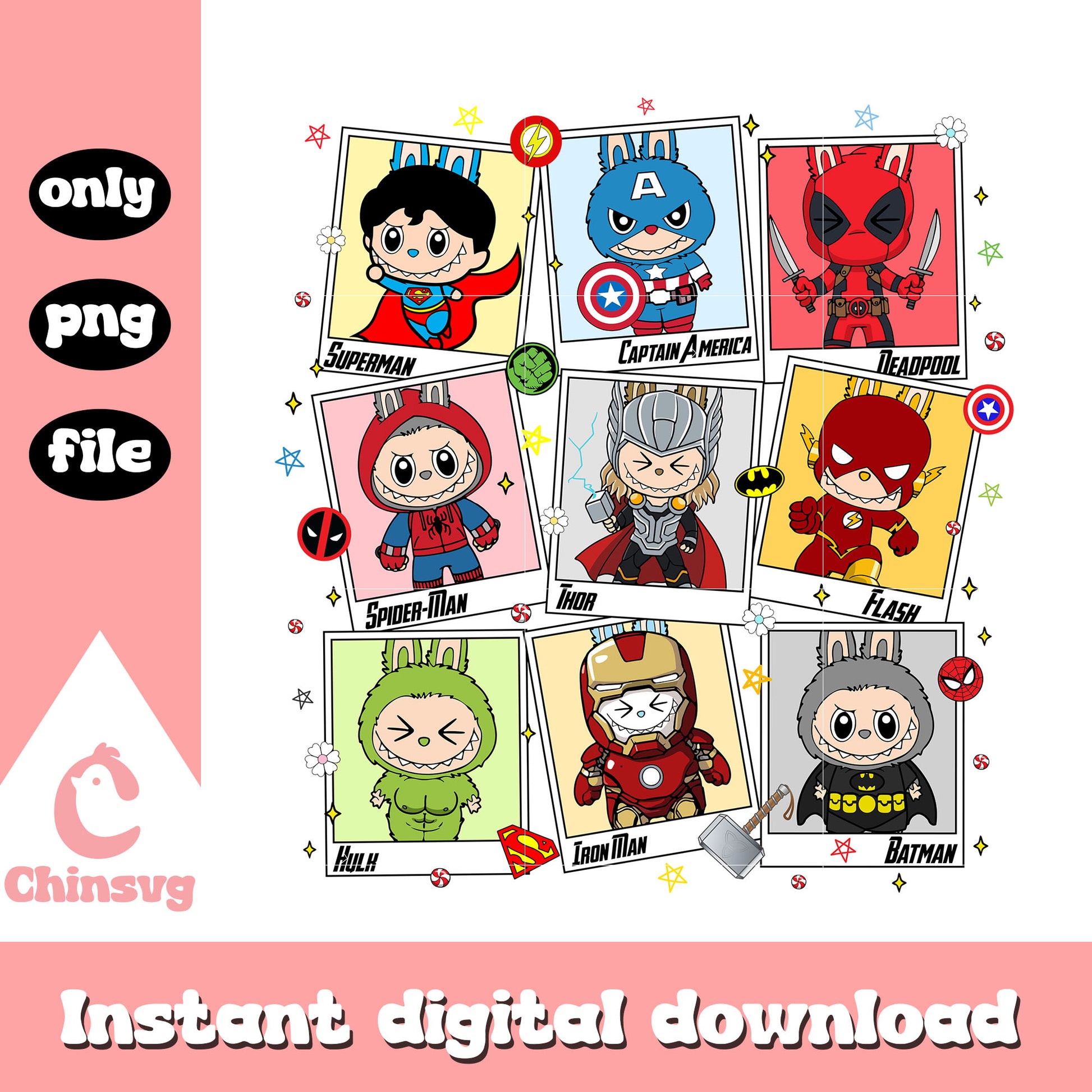 Labubu doll heroes costumes cards design png is a product of our Labubu collection. Dive into the magical world of Labubu with our whimsical Labubu SVG Collection! Inspired by the beloved mischievous character from the POP MART universe, this collection is filled with playful poses, expressive faces, and cute yet edgy vibes. Perfect for fans, collectors, and crafters looking to add a touch of artistic charm and character to their projects.