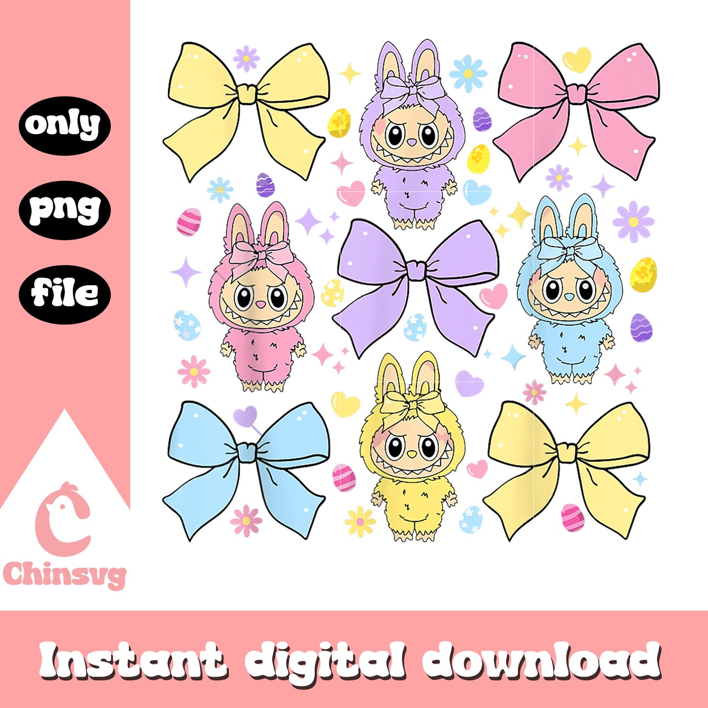 Labubu easter coquette bow cute doll design png, labubu toy png