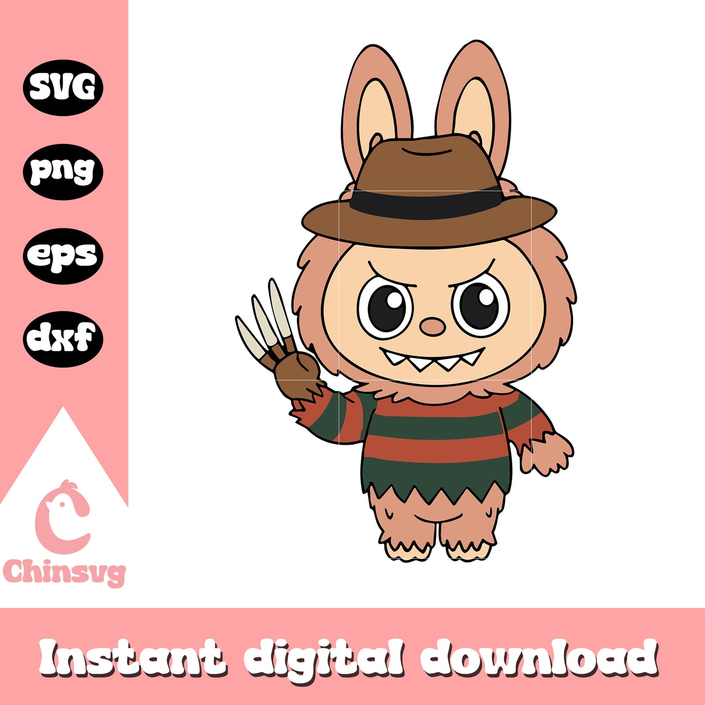 Labubu freddy krueger cute doll art svg, freddy krueger character svg