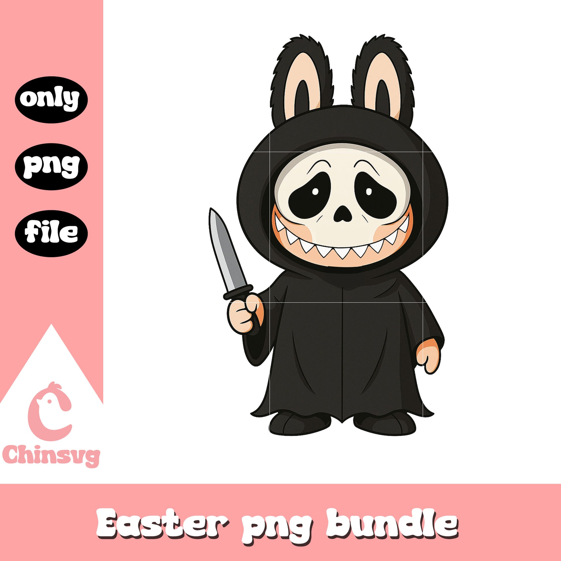 Labubu ghostface mask doll clothes design png is a product of our Labubu collection. Dive into the magical world of Labubu with our whimsical Labubu SVG Collection! Inspired by the beloved mischievous character from the POP MART universe, this collection is filled with playful poses, expressive faces, and cute yet edgy vibes. Perfect for fans, collectors, and crafters looking to add a touch of artistic charm and character to their projects.