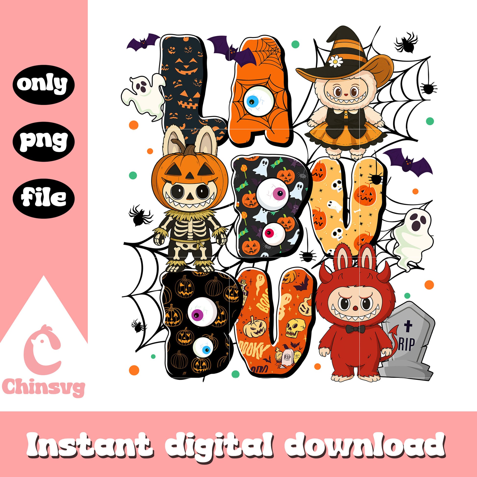Labubu horror halloween font design png, cute labubu png, halloween png