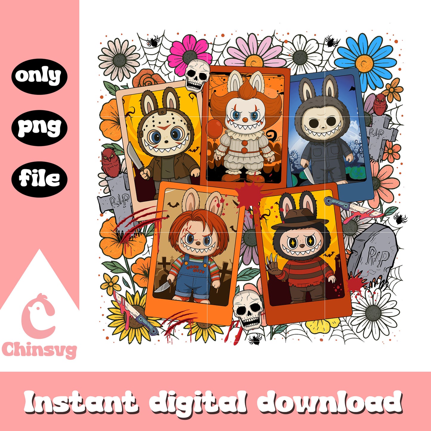 Labubu horror halloween picture png is a product of our Halloween collection. Whether you're crafting spooky decorations, designing party invitations, or creating unique apparel, this collection is packed with high-quality, detailed graphics that perfectly capture the spirit of Halloween. From pumpkins, ghosts, bats, to witches, skeletons, and more, this set offers endless possibilities for your creative ideas.