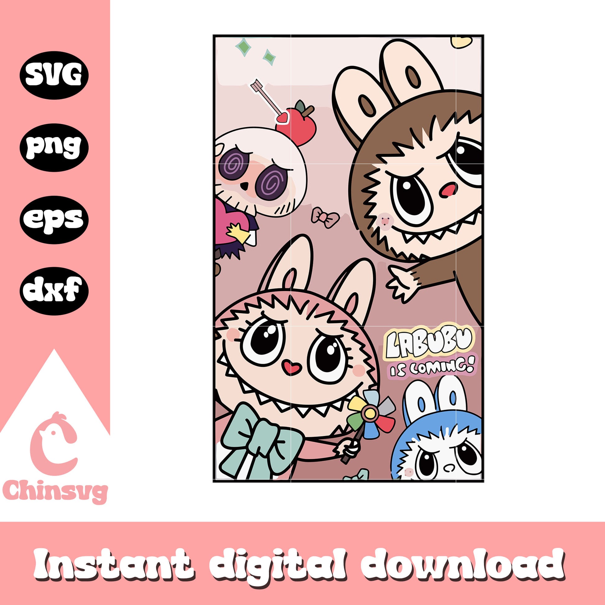 Labubu is coming cute dolls drawing svg, popmart labubu svg