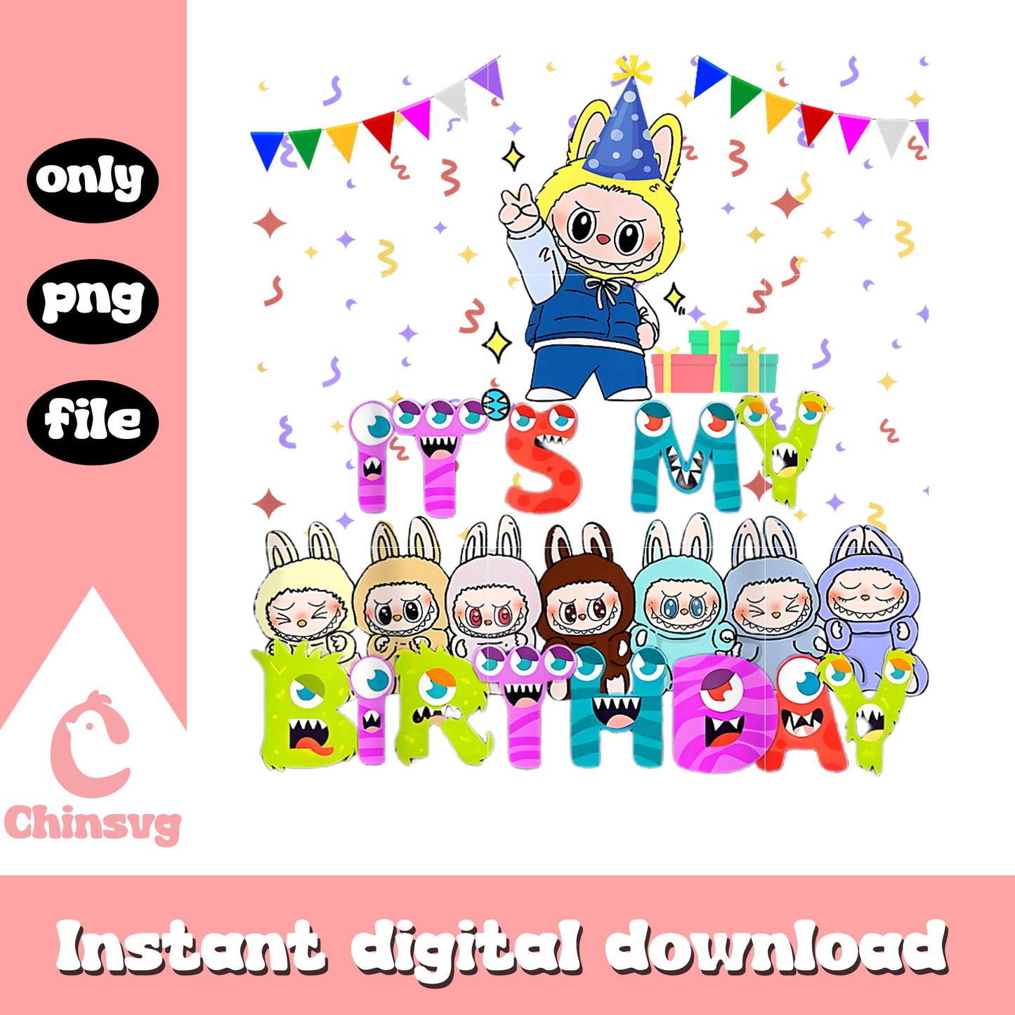 Labubu it's my birthday boy design png is a product of our Labubu collection. Dive into the magical world of Labubu with our whimsical Labubu SVG Collection! Inspired by the beloved mischievous character from the POP MART universe, this collection is filled with playful poses, expressive faces, and cute yet edgy vibes. Perfect for fans, collectors, and crafters looking to add a touch of artistic charm and character to their projects.