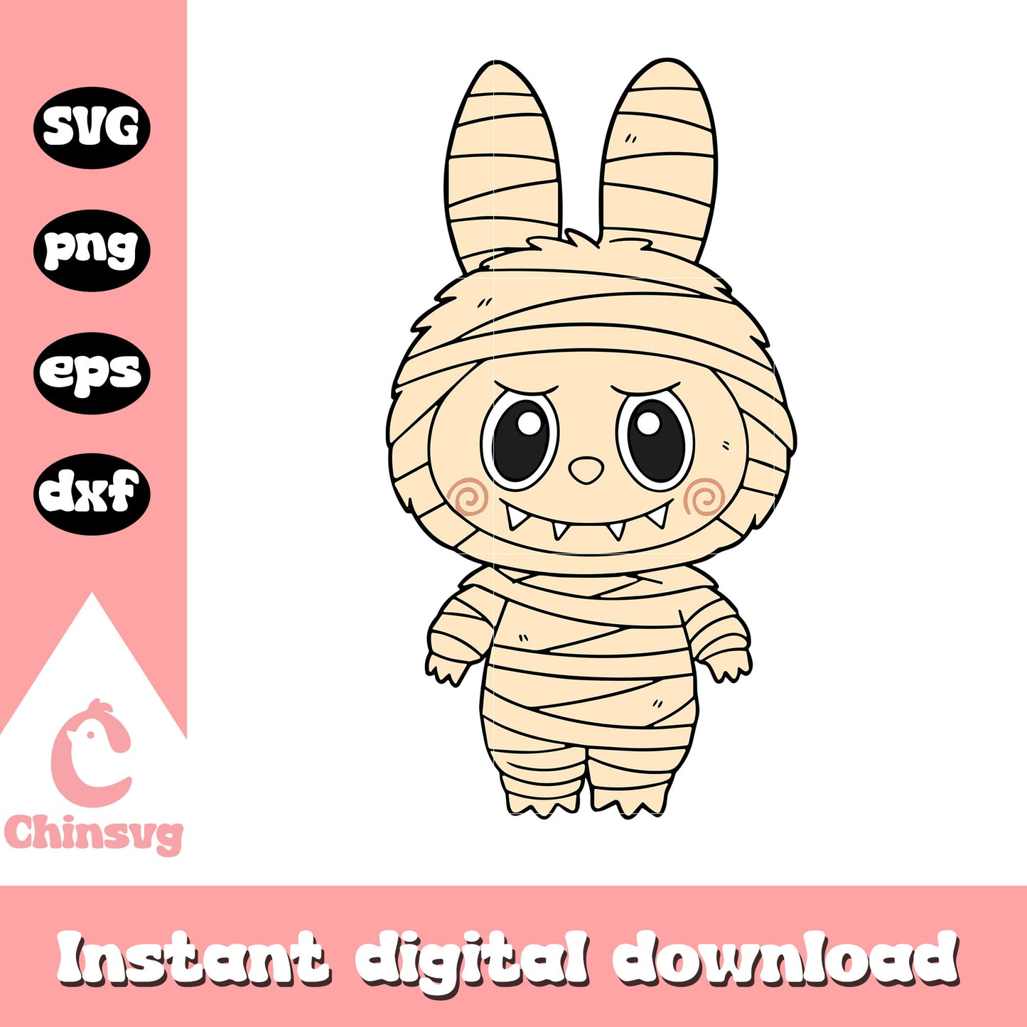 Labubu mummy halloween drawing design svg is a product of our Labubu collection. Dive into the magical world of Labubu with our whimsical Labubu SVG Collection! Inspired by the beloved mischievous character from the POP MART universe, this collection is filled with playful poses, expressive faces, and cute yet edgy vibes. Perfect for fans, collectors, and crafters looking to add a touch of artistic charm and character to their projects.