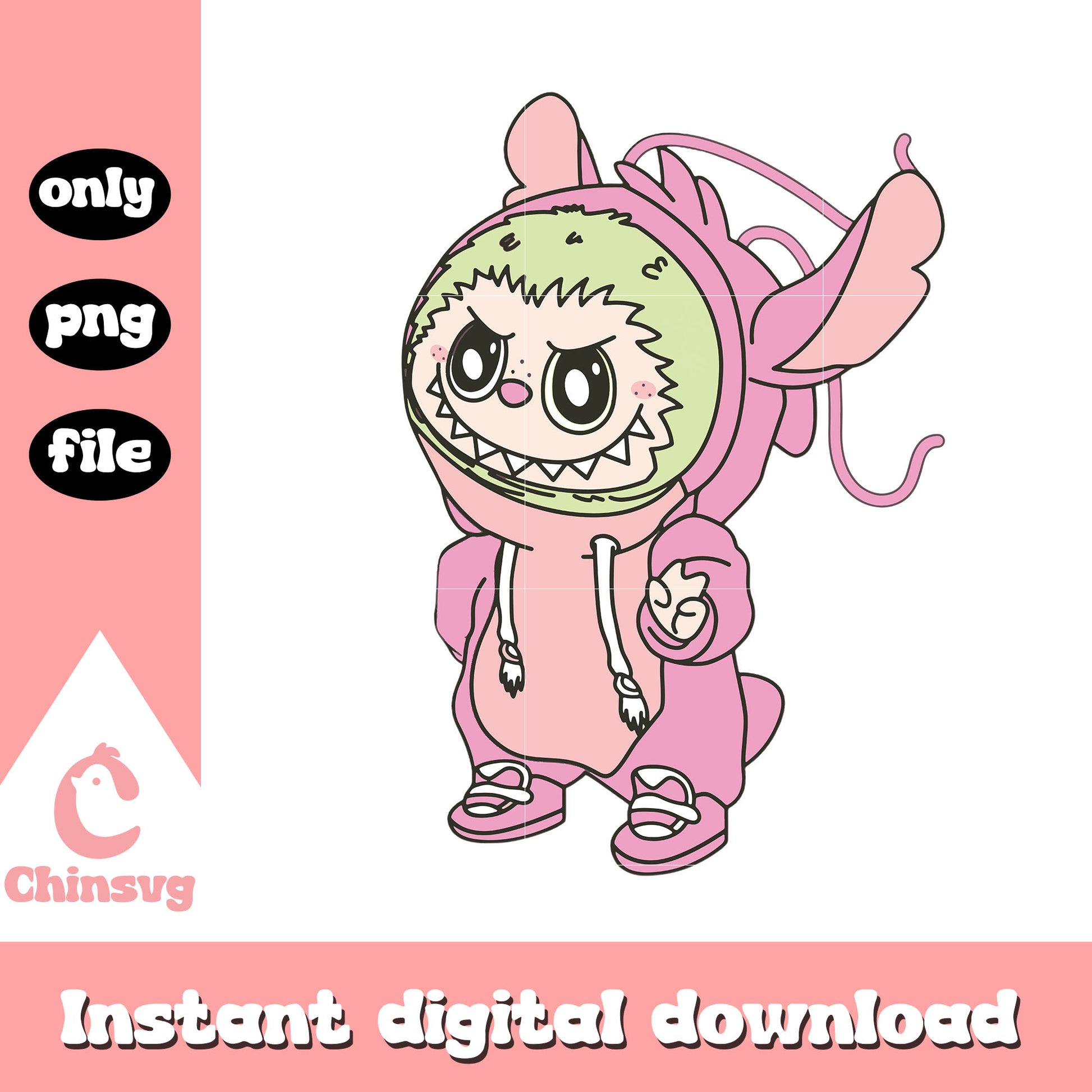 Labubu pink lilo and stitch cosplay design png, baby labubu png