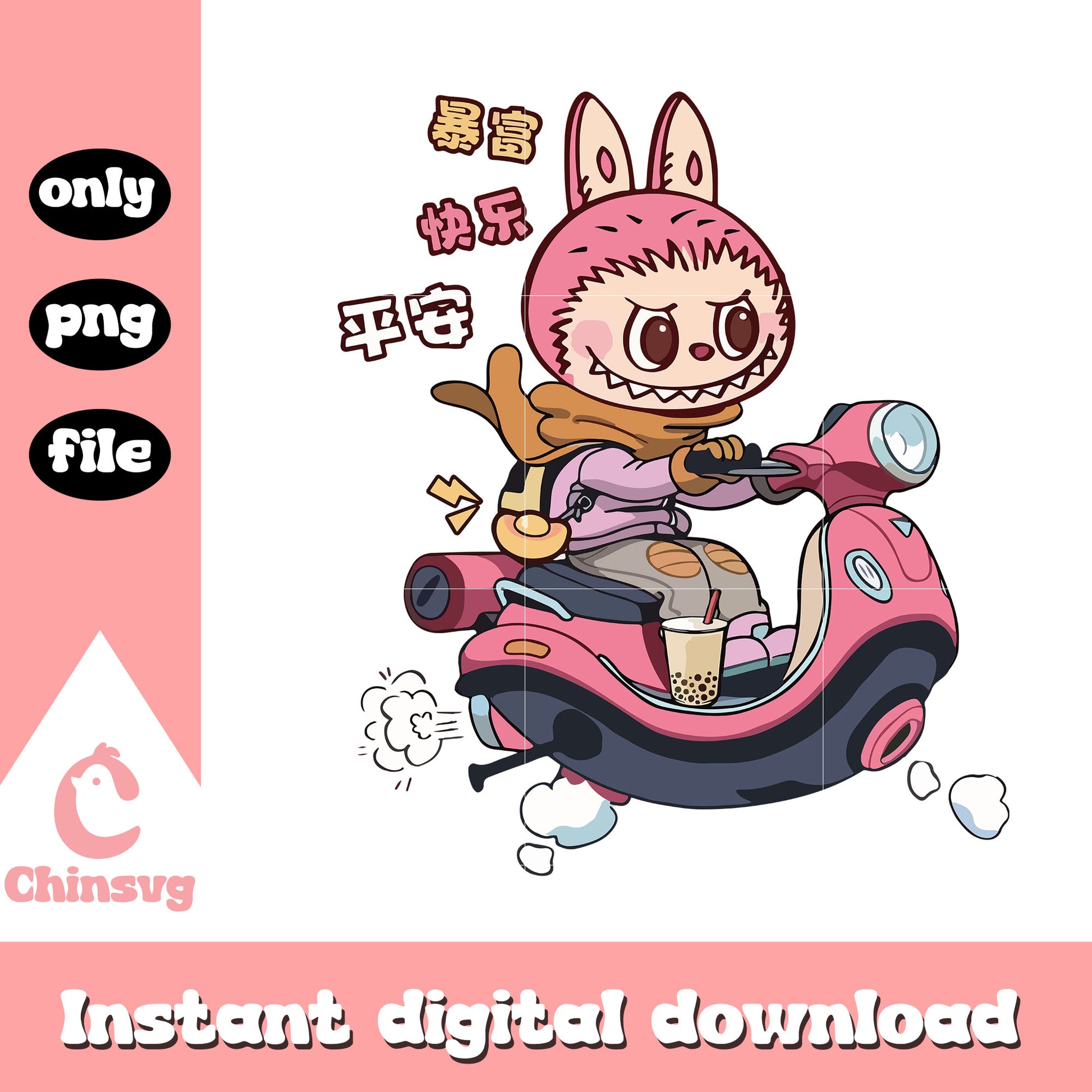 Labubu scooter ride design png is a product of our Labubu collection. Dive into the magical world of Labubu with our whimsical Labubu SVG Collection! Inspired by the beloved mischievous character from the POP MART universe, this collection is filled with playful poses, expressive faces, and cute yet edgy vibes. Perfect for fans, collectors, and crafters looking to add a touch of artistic charm and character to their projects.
