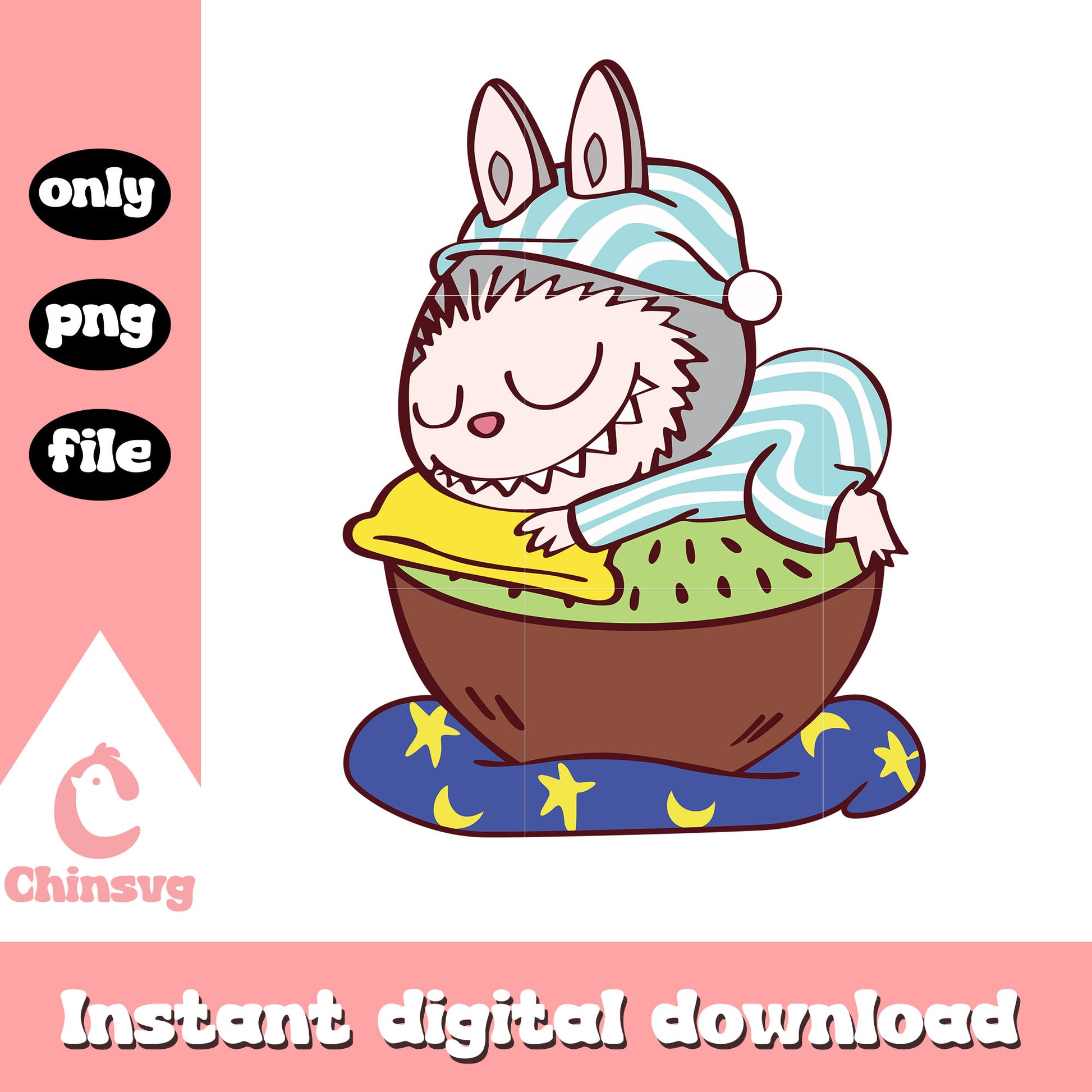 Labubu sleeping kiwi ver drawing png, labubu decor png