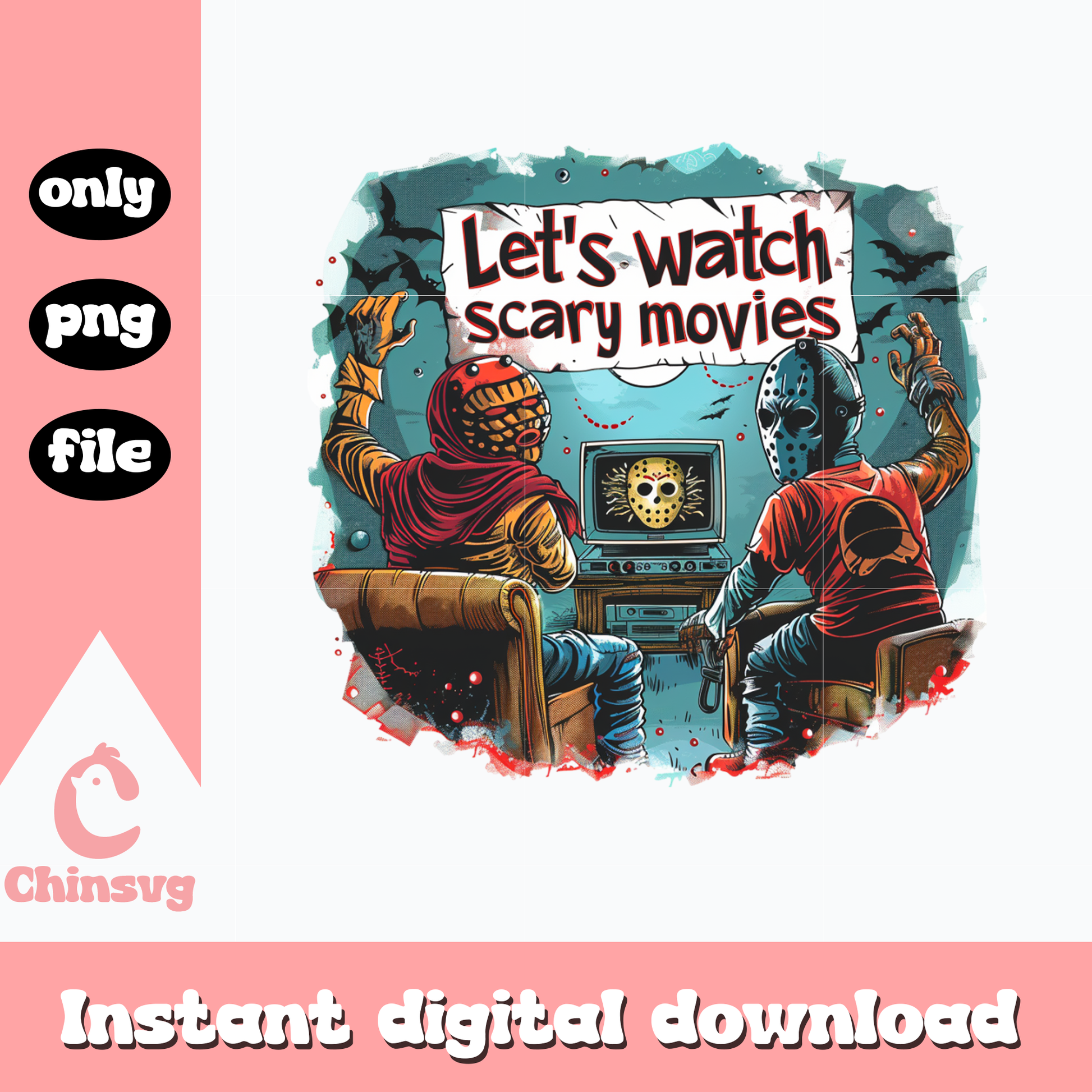Let's watch scary movies png, scary movie png, Halloween png this is a digital download file. It's not a physical commodity. Those are digital files you can use for t-shirts, scrapbooks, wall vinyls, stickers, Perfect for T-shirts, iron-ons, mugs, printables, card making, scrapbooking, etc.