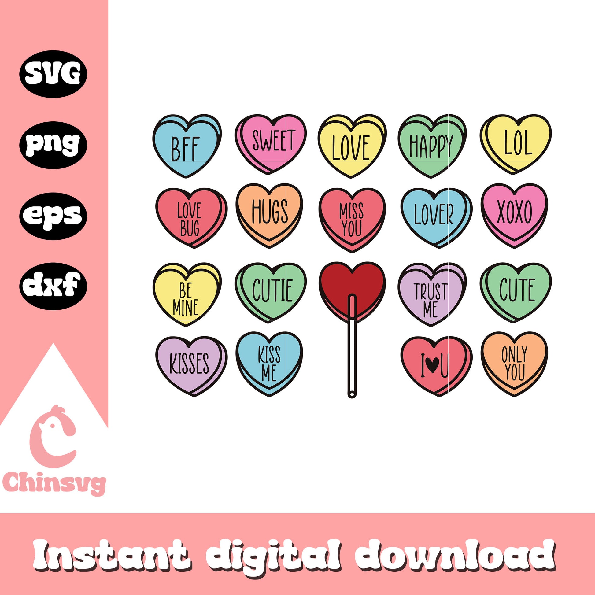 Love hearts candy valentine svg is a product of our Valentine collection. Whether you’re crafting personalized gifts, romantic cards, or decorating for a special day, this collection is filled with beautiful designs that capture the spirit of Valentine’s Day. Featuring hearts, roses, Cupid, love quotes, and more, these high-quality files will inspire your creativity and help you make something truly unforgettable for your loved ones.