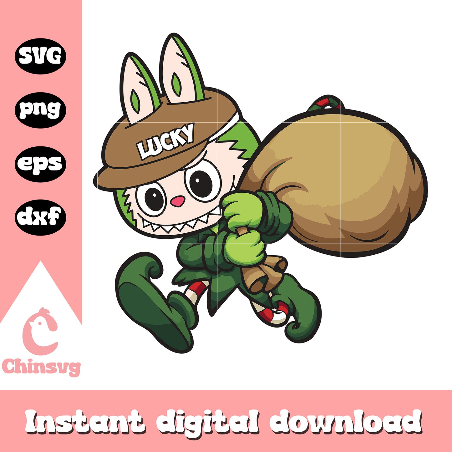 Lucky fortune labubu doll drawing design svg, labubu box svg