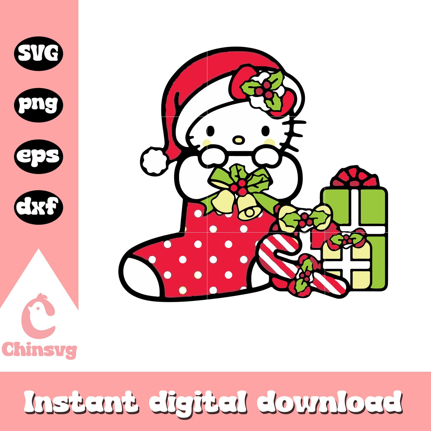 Merry christmas kitty santa svg, hello kitty christmas svg
