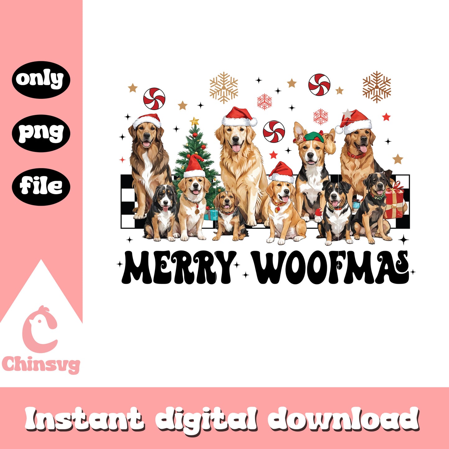 Merry woofmas design png, christmas dog png, dogs in christmas png