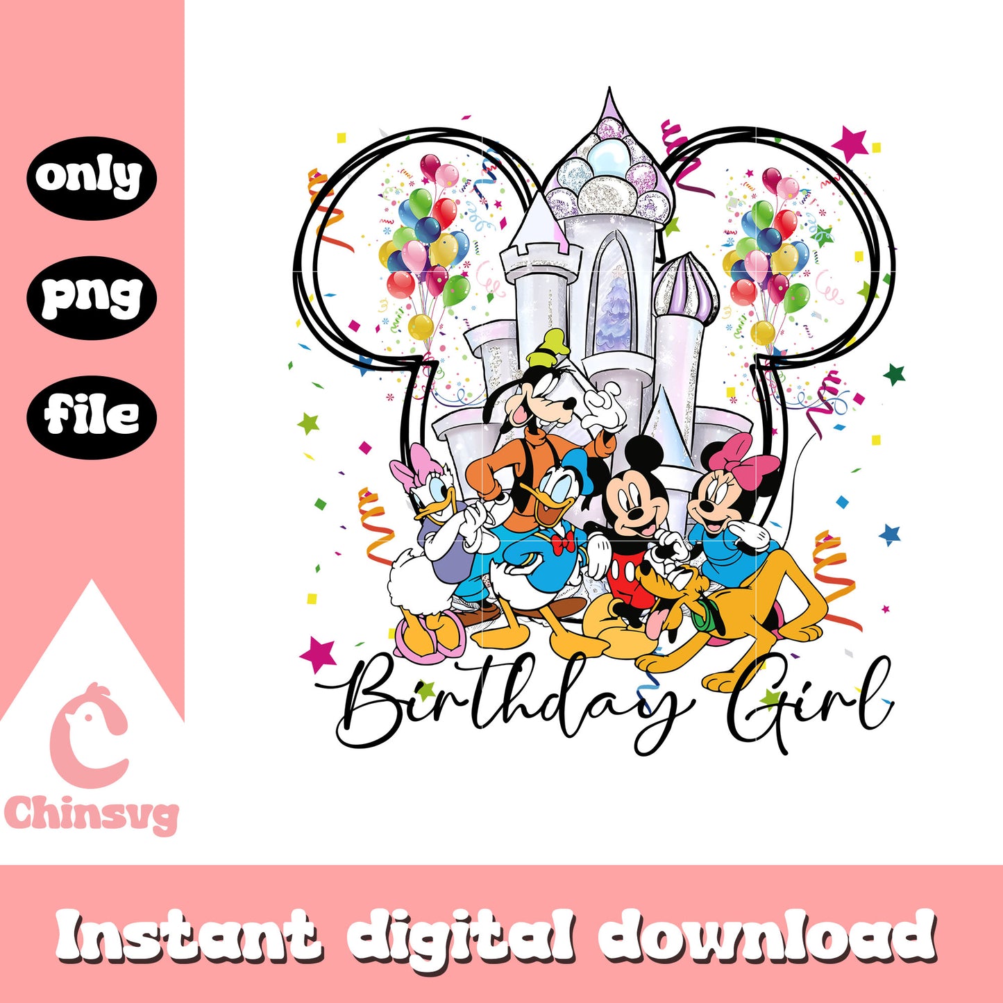 Mickey and friends birthday girl png is a product of our Disney collection. Perfect for Disney fans of all ages, this collection captures the charm and nostalgia of your favorite characters and magical worlds. Featuring a range of beloved characters, castles, magical icons, and whimsical designs, these files are ideal for creating everything from custom apparel to party decorations and personalized gifts.