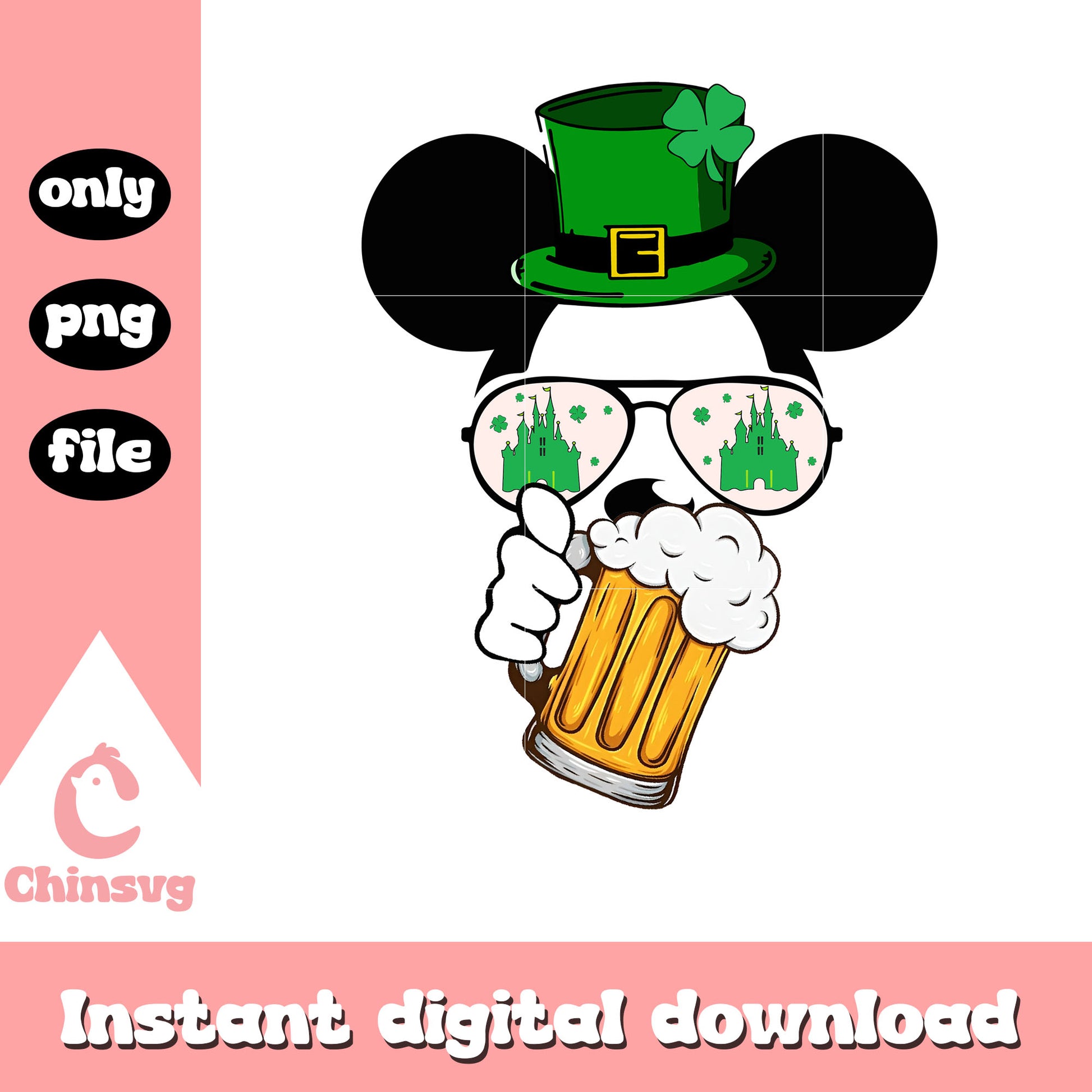 Mickey beer st patrick day png is a product of our St patrick's day collection. Packed with festive designs, this collection features lucky clovers, leprechauns, rainbows, hats, mugs of beer, and all things green and gold. Perfect for crafting custom decorations, apparel, and gifts, these high-quality files are ideal for adding a touch of Irish cheer to your creative projects.