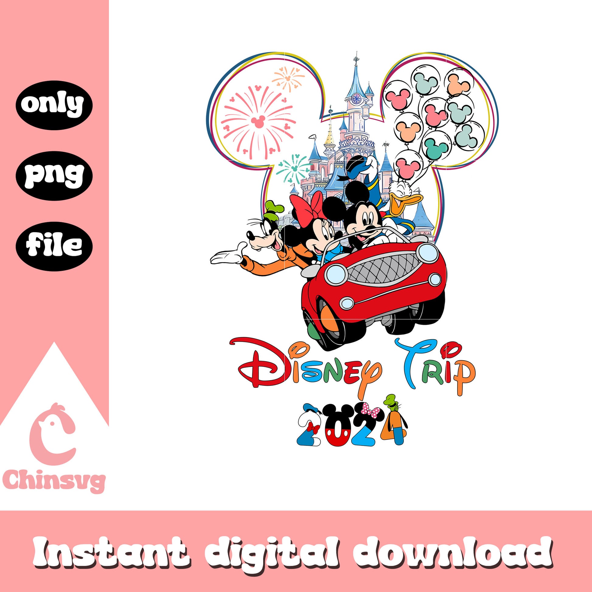 Mickey car disney trip 2024 png is a product of our Disney collection. Perfect for Disney fans of all ages, this collection captures the charm and nostalgia of your favorite characters and magical worlds. Featuring a range of beloved characters, castles, magical icons, and whimsical designs, these files are ideal for creating everything from custom apparel to party decorations and personalized gifts.