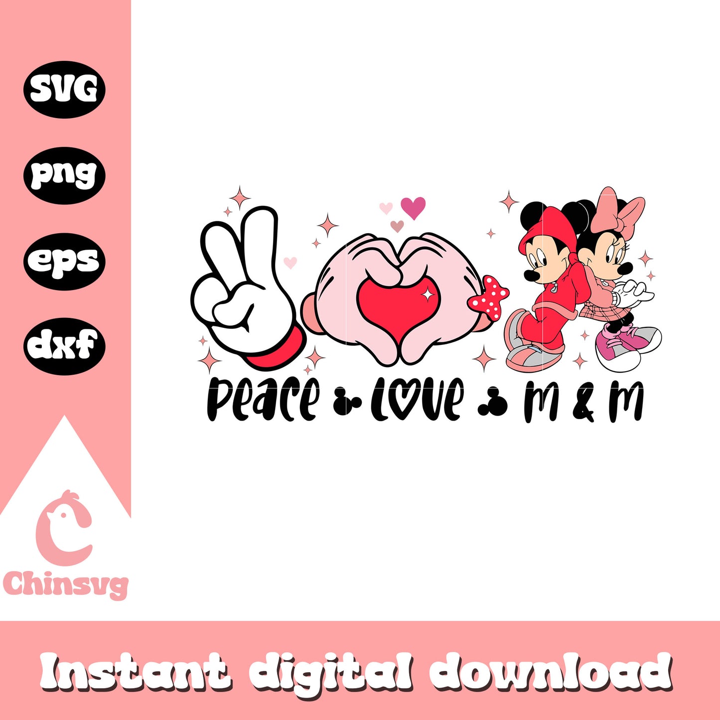 Mickey couple peace love m&m svg is a product of our Valentine collection. Whether you’re crafting personalized gifts, romantic cards, or decorating for a special day, this collection is filled with beautiful designs that capture the spirit of Valentine’s Day. Featuring hearts, roses, Cupid, love quotes, and more, these high-quality files will inspire your creativity and help you make something truly unforgettable for your loved ones.
