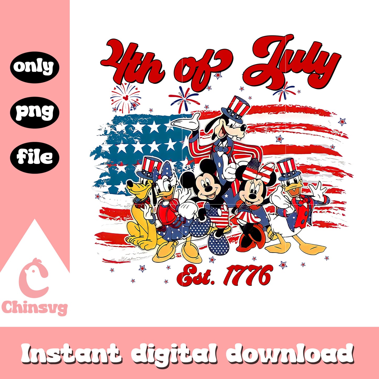 Mickey disney 4th of july est 1776 png is a product of our 4th of July collection. Get ready to celebrate America’s Independence Day in style with our 4th of July SVG Collection! Packed with bold red, white, and blue designs, this collection features patriotic graphics, fun quotes, fireworks, flags, and more. Perfect for DIY apparel, party decorations, and personalized gifts that light up the holiday spirit!