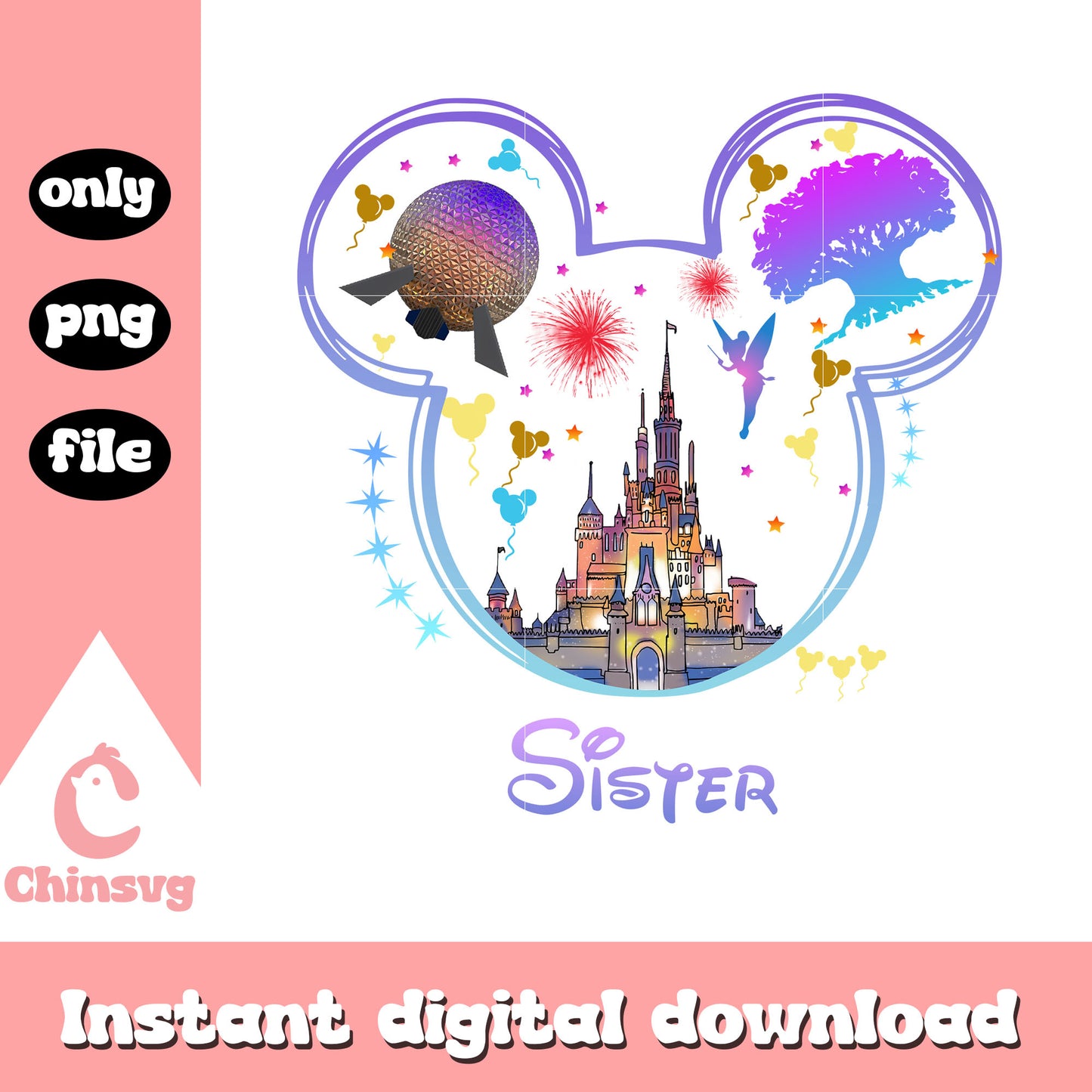 Mickey disney castle sister png is a product of our Disney collection. Perfect for Disney fans of all ages, this collection captures the charm and nostalgia of your favorite characters and magical worlds. Featuring a range of beloved characters, castles, magical icons, and whimsical designs, these files are ideal for creating everything from custom apparel to party decorations and personalized gifts.