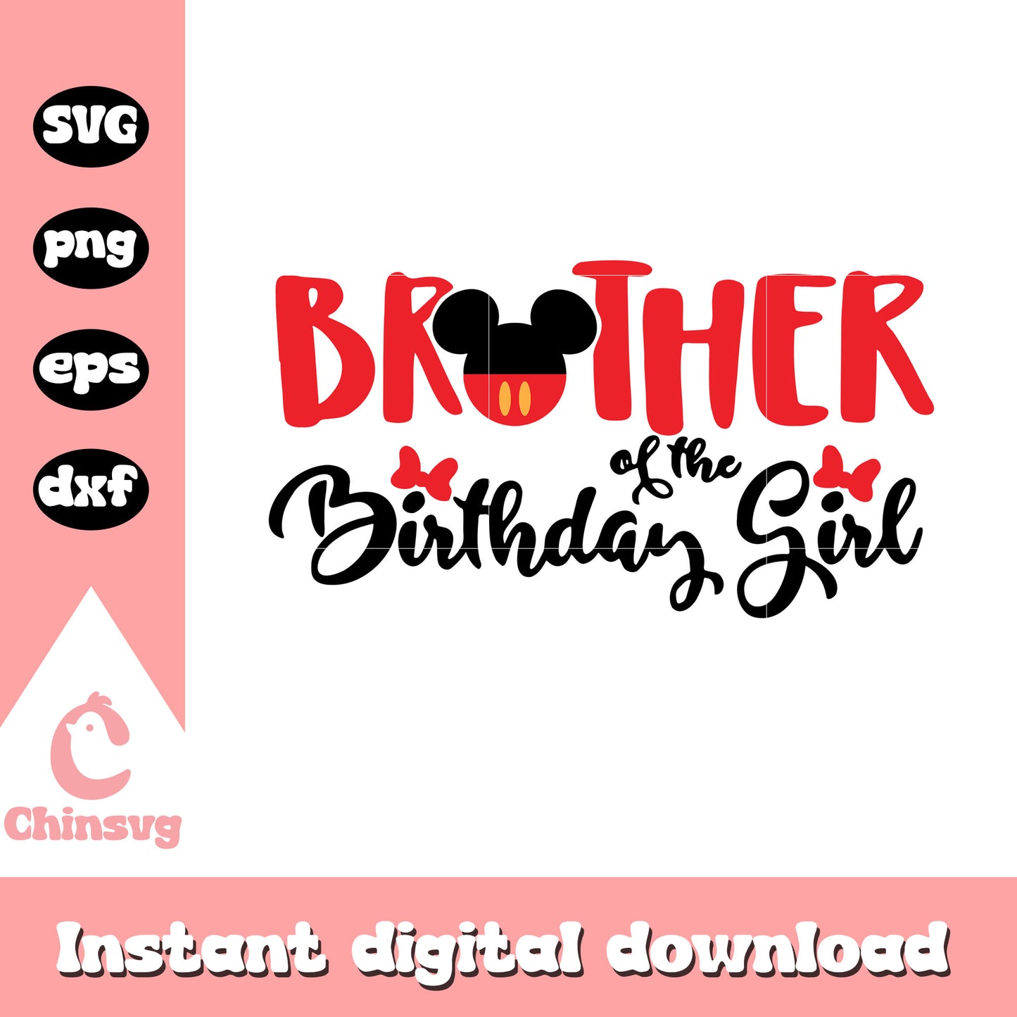Mickey head brother of the birthday girl svg is a product of our Disney collection. Perfect for Disney fans of all ages, this collection captures the charm and nostalgia of your favorite characters and magical worlds. Featuring a range of beloved characters, castles, magical icons, and whimsical designs, these files are ideal for creating everything from custom apparel to party decorations and personalized gifts.