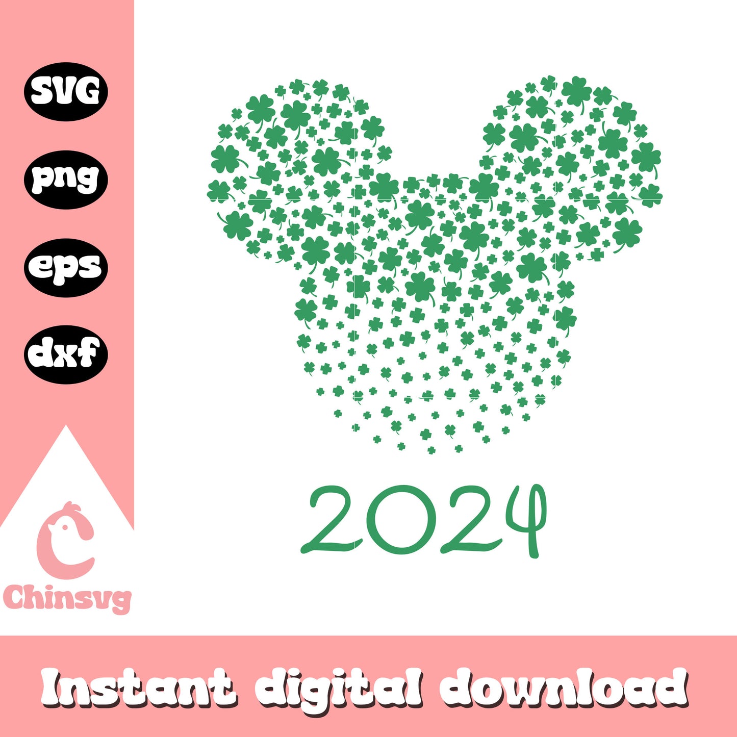 Mickey head clover 2024 svg, st patrick's day svg, mickey mouse svg