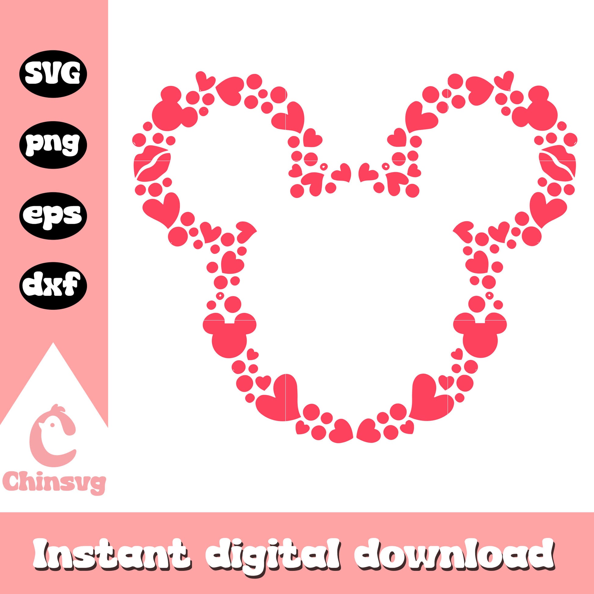Mickey head heart valentine svg, valentines day mickey ears svg