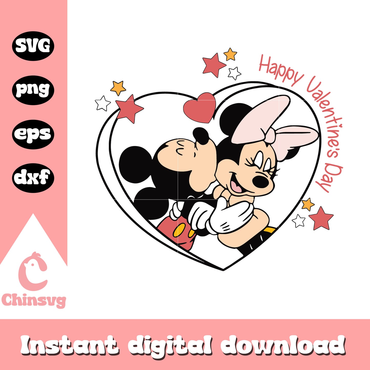 Mickey kiss minnie happy valentine day svg, disney couple svg