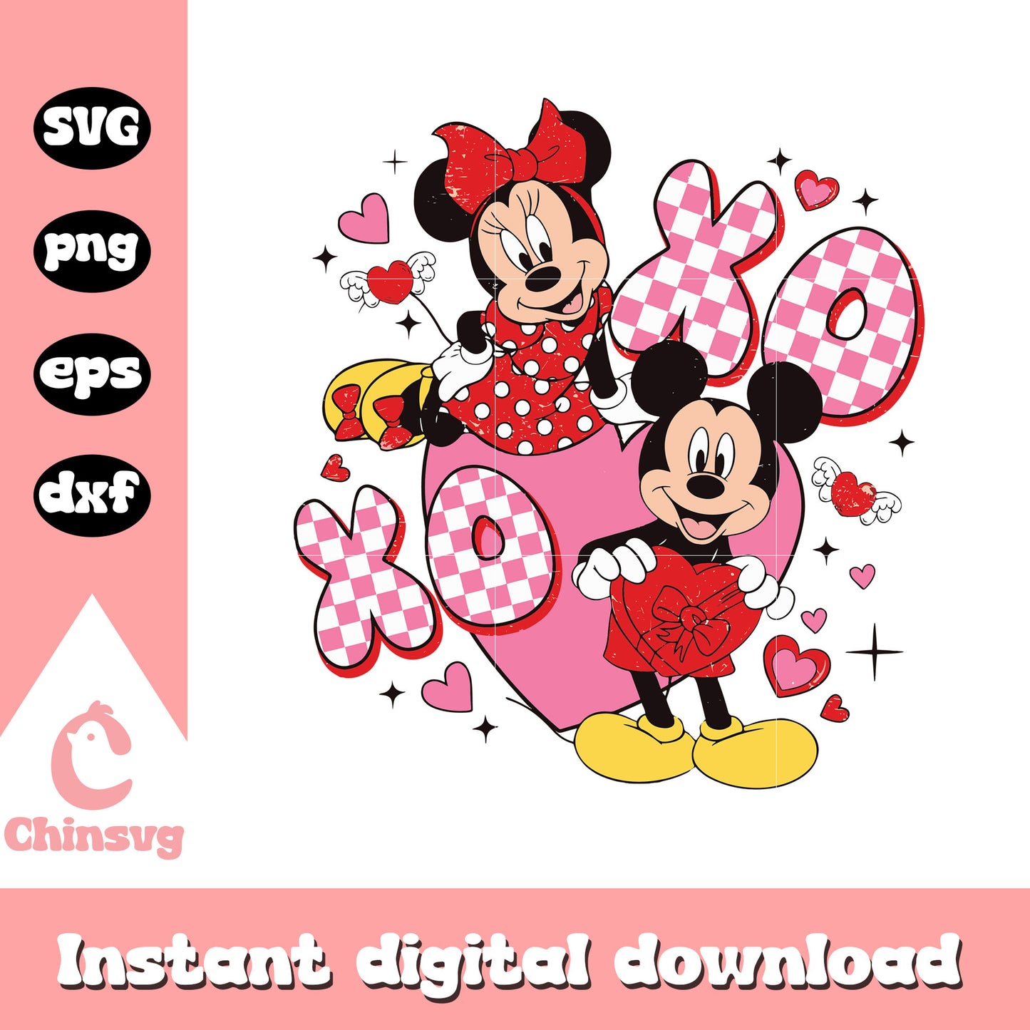 Mickey Minnie xoxo valentine design svg, xoxo svg, valentine svg