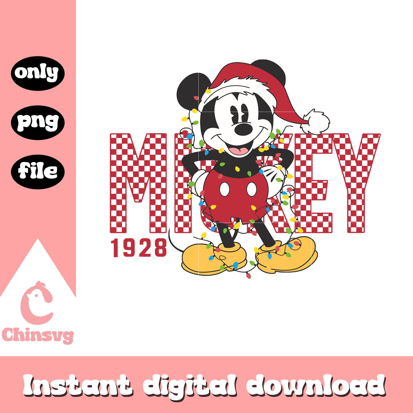 Mickey santa christmas lights 1928 png is a product of our christmas collection. Perfect for DIY enthusiasts, crafters, and designers, this collection offers a wide range of festive elements like Christmas trees, Santa Claus, snowflakes, ornaments, reindeer, and more. Whether you’re designing greeting cards, personalized gifts, or home decor, these high-quality designs will help you create something truly special this Christmas.