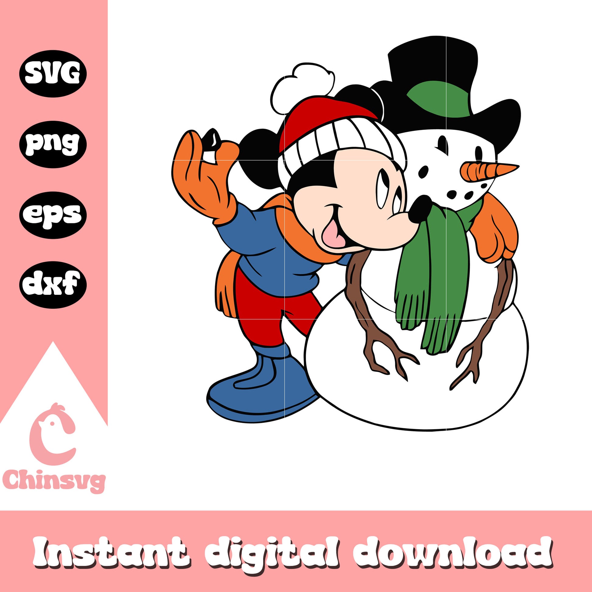Mickey santa hat and snowman design svg, christmas mickey svg