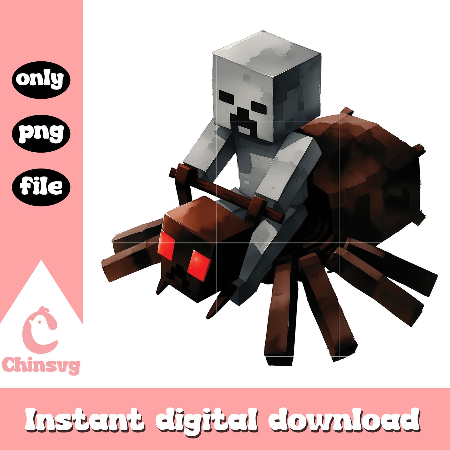 Minecraft spider jockey design png is a product of our Minecraft collection. Step into the pixelated world of creativity with our Minecraft SVG Collection! Inspired by the beloved sandbox game, this set is packed with blocky characters, tools, mobs, and fun gamer quotes – perfect for fans, kids, and crafters who want to bring Minecraft magic to life.
