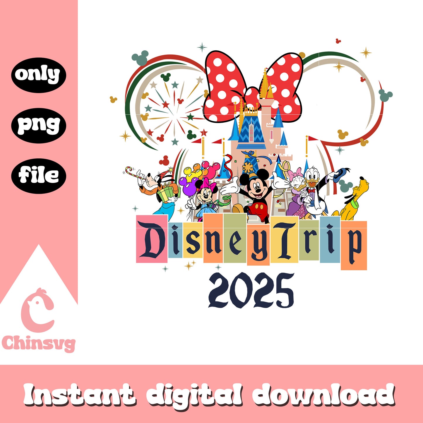 Minnie face design disney trip 2025 png is a product of our Disney collection. Perfect for Disney fans of all ages, this collection captures the charm and nostalgia of your favorite characters and magical worlds. Featuring a range of beloved characters, castles, magical icons, and whimsical designs, these files are ideal for creating everything from custom apparel to party decorations and personalized gifts.