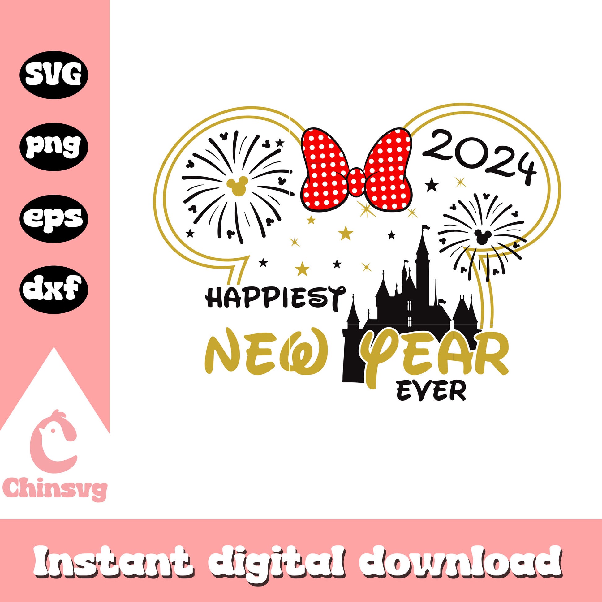 Minnie happiest new year ever 2024 svg, minnie ears svg, castle disney svg