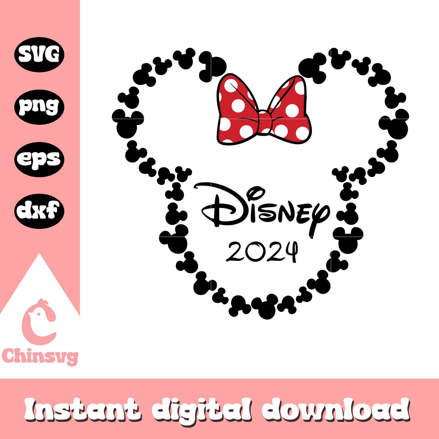 Minnie head disney 2024 svg is a product of our Disney collection. Perfect for Disney fans of all ages, this collection captures the charm and nostalgia of your favorite characters and magical worlds. Featuring a range of beloved characters, castles, magical icons, and whimsical designs, these files are ideal for creating everything from custom apparel to party decorations and personalized gifts.