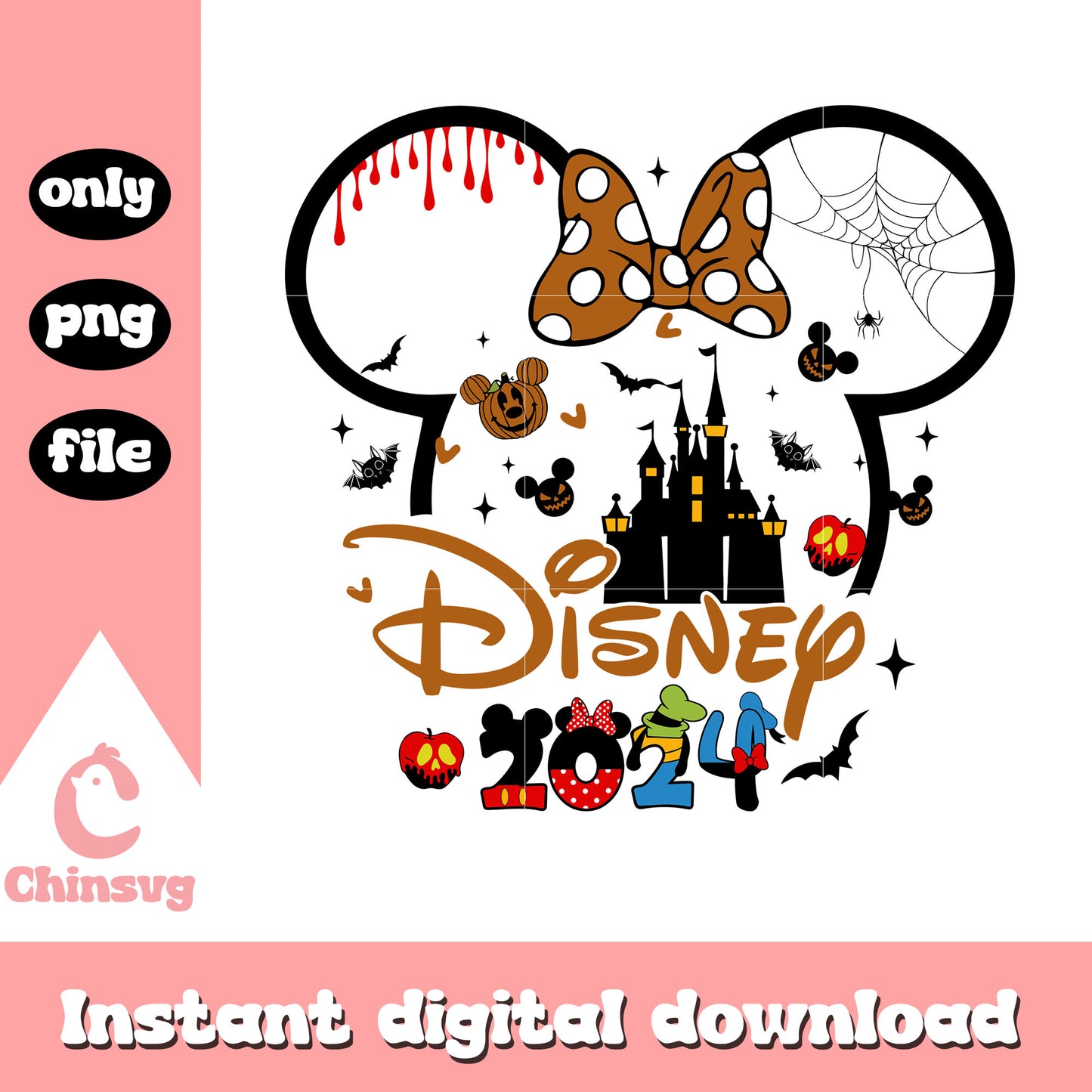 Minnie head disney castle 2024 png is a product of our Disney collection. Perfect for Disney fans of all ages, this collection captures the charm and nostalgia of your favorite characters and magical worlds. Featuring a range of beloved characters, castles, magical icons, and whimsical designs, these files are ideal for creating everything from custom apparel to party decorations and personalized gifts.