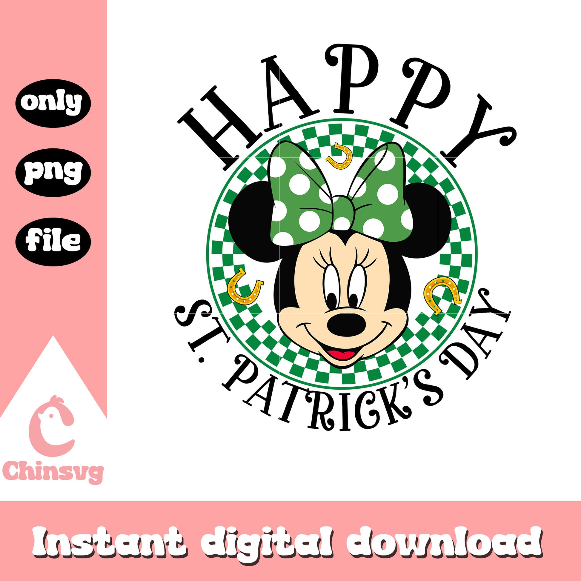 Minnie head happy st. patrick's day png is a product of our St patrick's day collection. Packed with festive designs, this collection features lucky clovers, leprechauns, rainbows, hats, mugs of beer, and all things green and gold. Perfect for crafting custom decorations, apparel, and gifts, these high-quality files are ideal for adding a touch of Irish cheer to your creative projects.