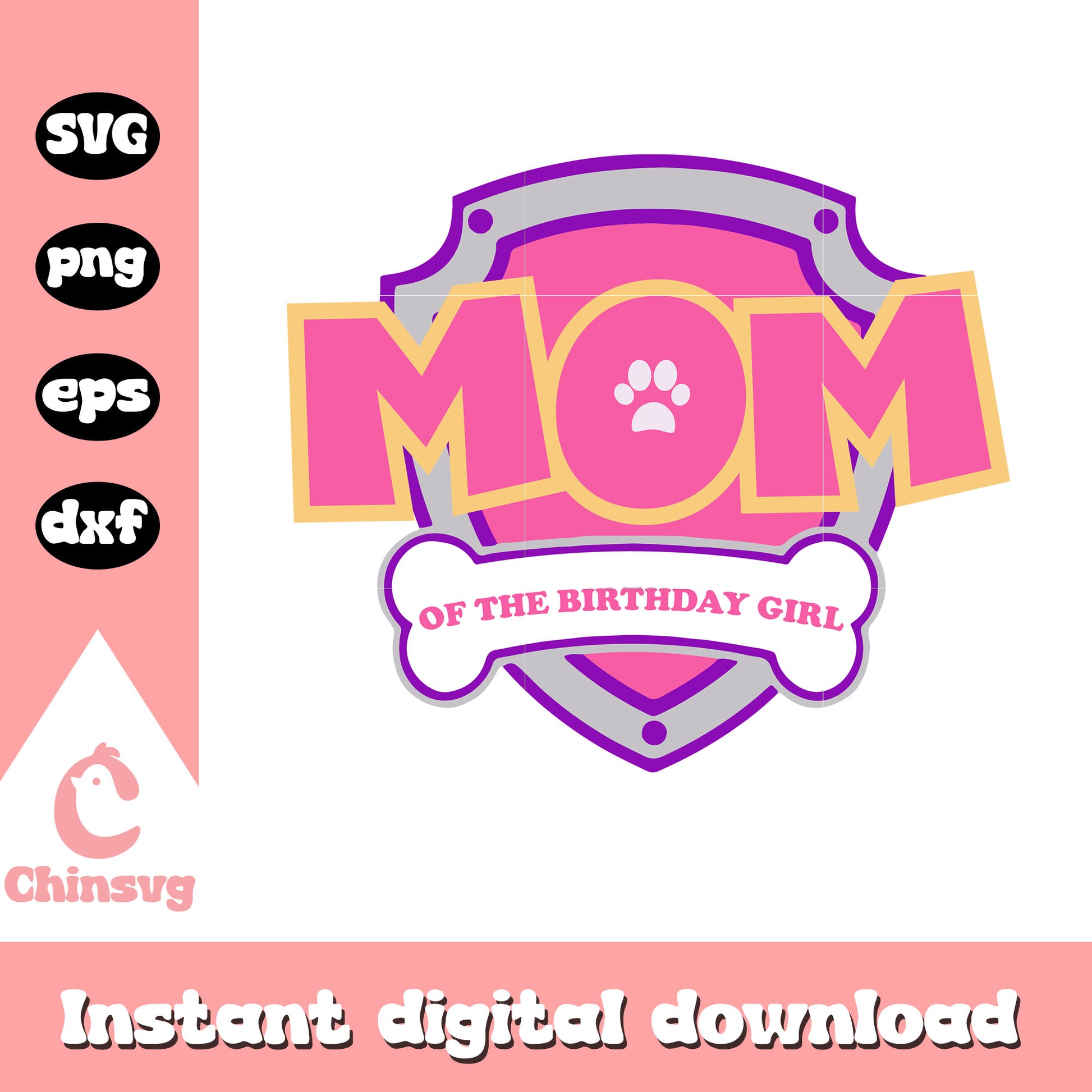 Mom of the birthday girl svg, shield png, paw patrol png