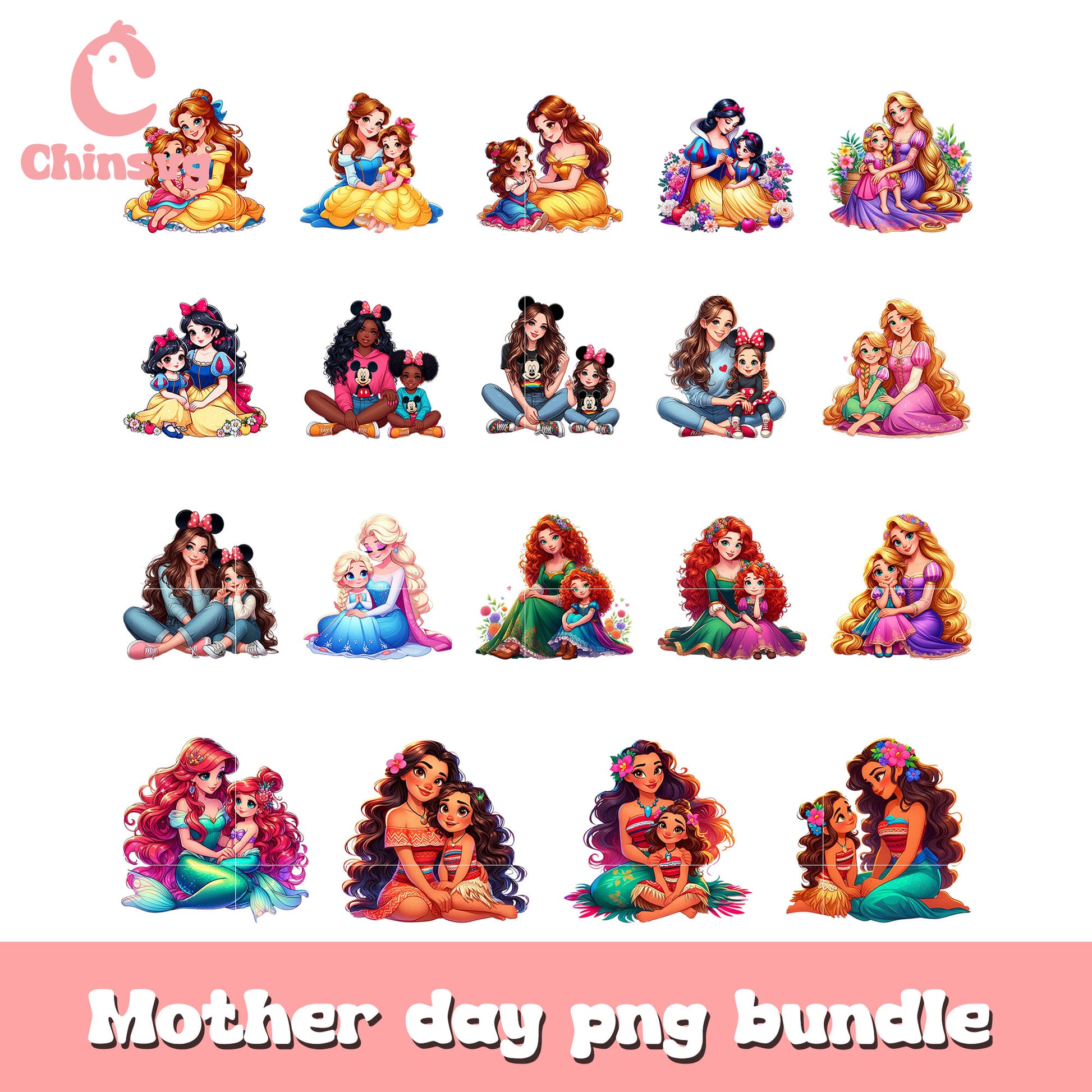 Mother disney princess design bundle png is a product of our Mother's Day Svg collection. Featuring heartfelt quotes, floral designs, loving messages, and elegant typography, this collection is perfect for creating meaningful and personalized gifts. Whether you’re crafting t-shirts, mugs, greeting cards, or home decor, these high-quality designs will help make Mother’s Day extra special.