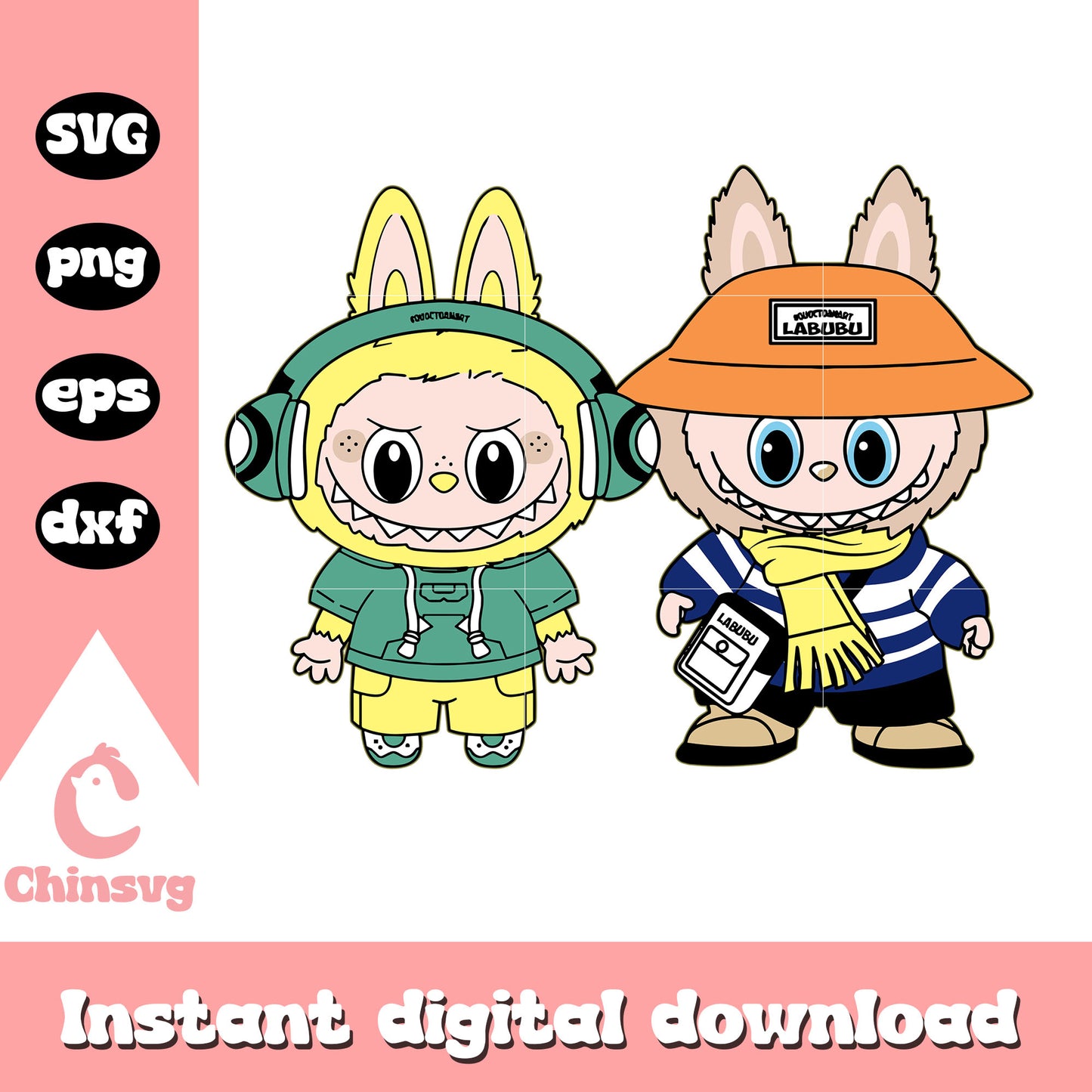 Music and adventure labubu doll drawing design svg, labubu dolls svg