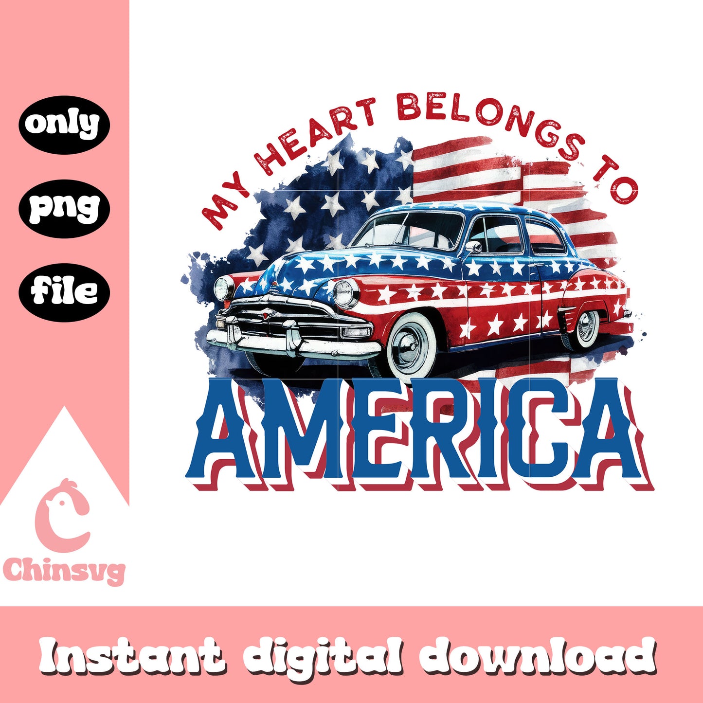 My heart belongs to america car design png is a product of our 4th of July collection. Get ready to celebrate America’s Independence Day in style with our 4th of July SVG Collection! Packed with bold red, white, and blue designs, this collection features patriotic graphics, fun quotes, fireworks, flags, and more. Perfect for DIY apparel, party decorations, and personalized gifts that light up the holiday spirit!