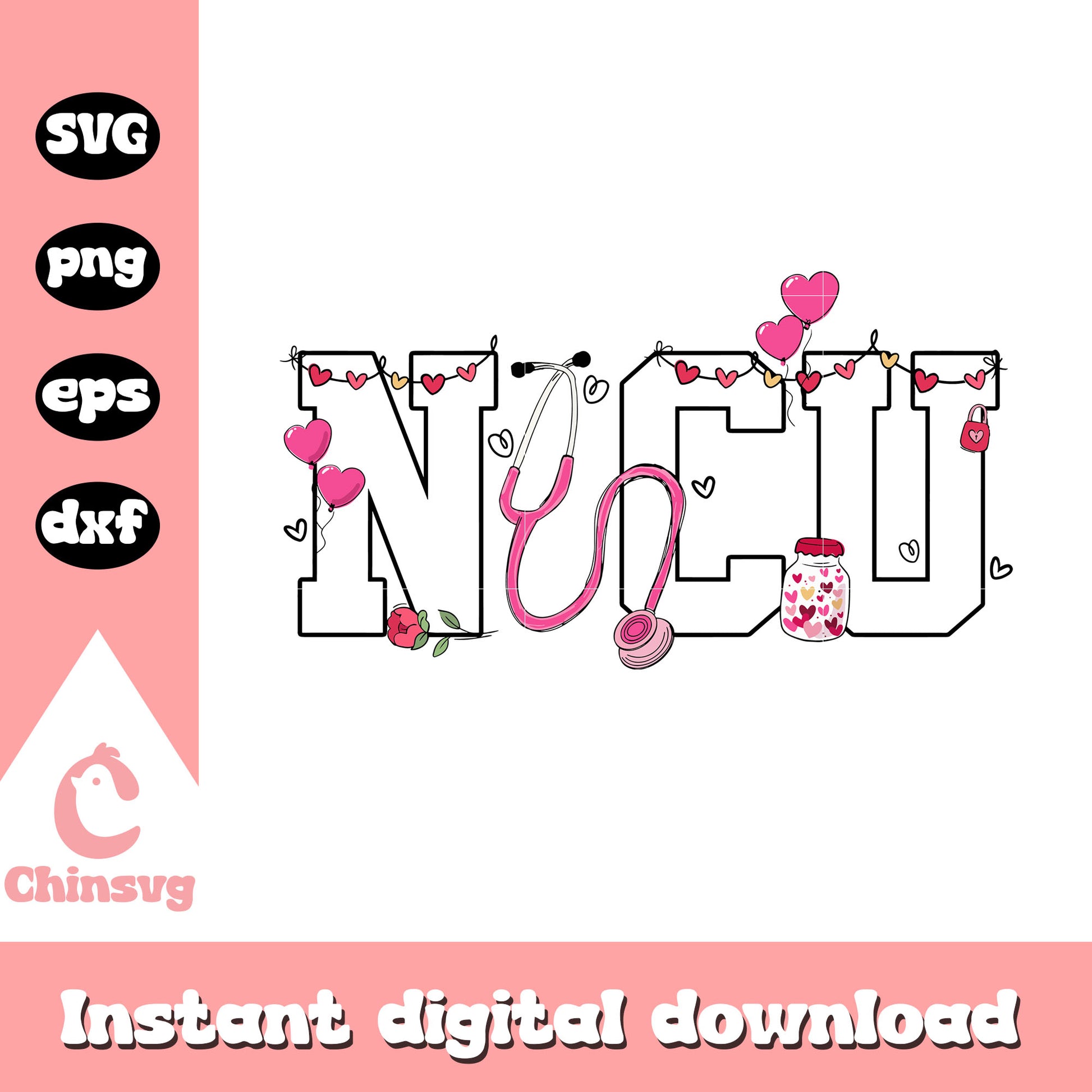 Nicu valentine font design svg, nicu nurse svg, valentine svg