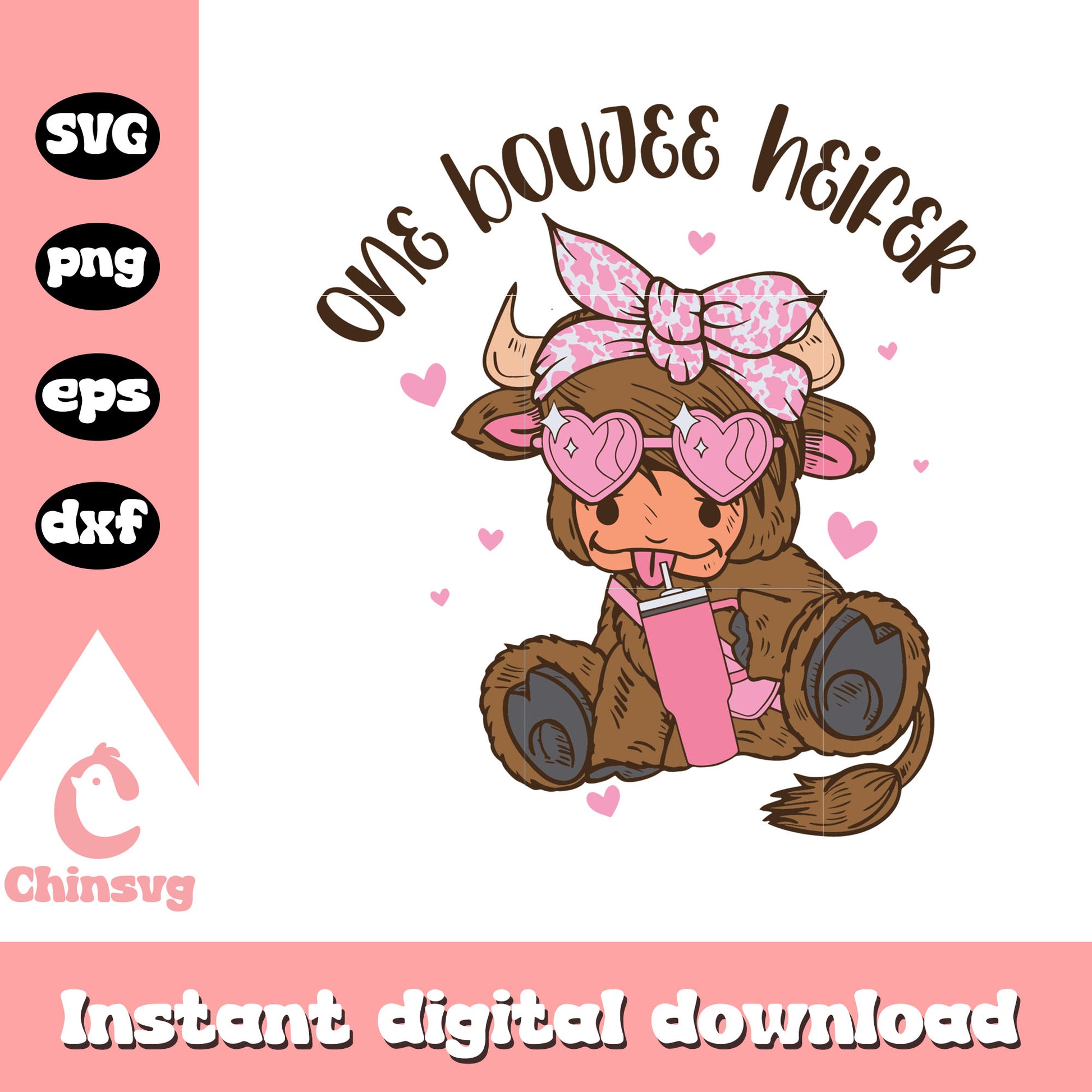 One Boujee Heifer and bow svg, Highland Cow svg, valentine svg