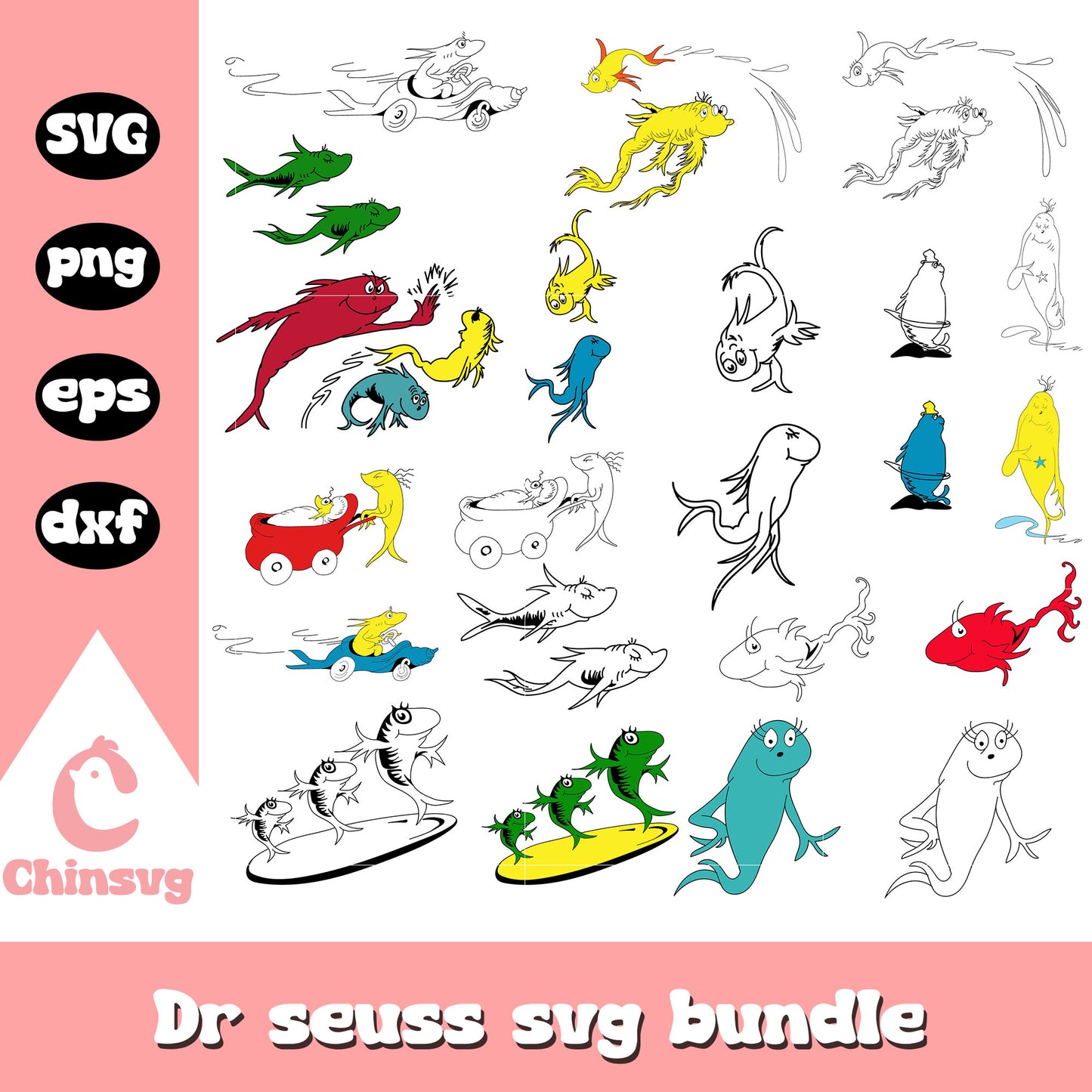 One fish two fish red fish bundle svg is a product of our Dr seuss collection. inspired by the beloved books and characters that have enchanted generations! Featuring iconic designs of The Cat in the Hat, Horton, Thing 1 & Thing 2, and more, along with memorable quotes and whimsical elements, this collection is perfect for crafting unique projects that spark joy and creativity.