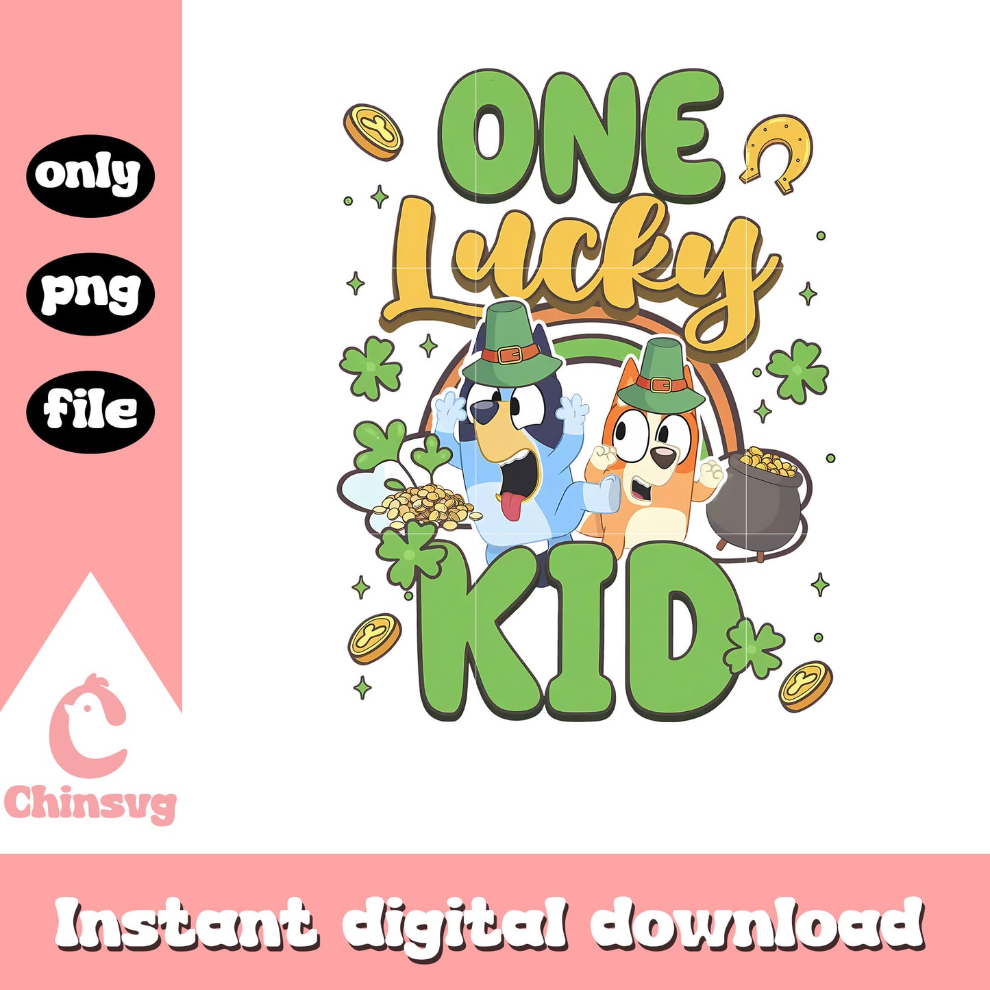 One lucky kid Bluey Bingo dog png, st. patrick's day png